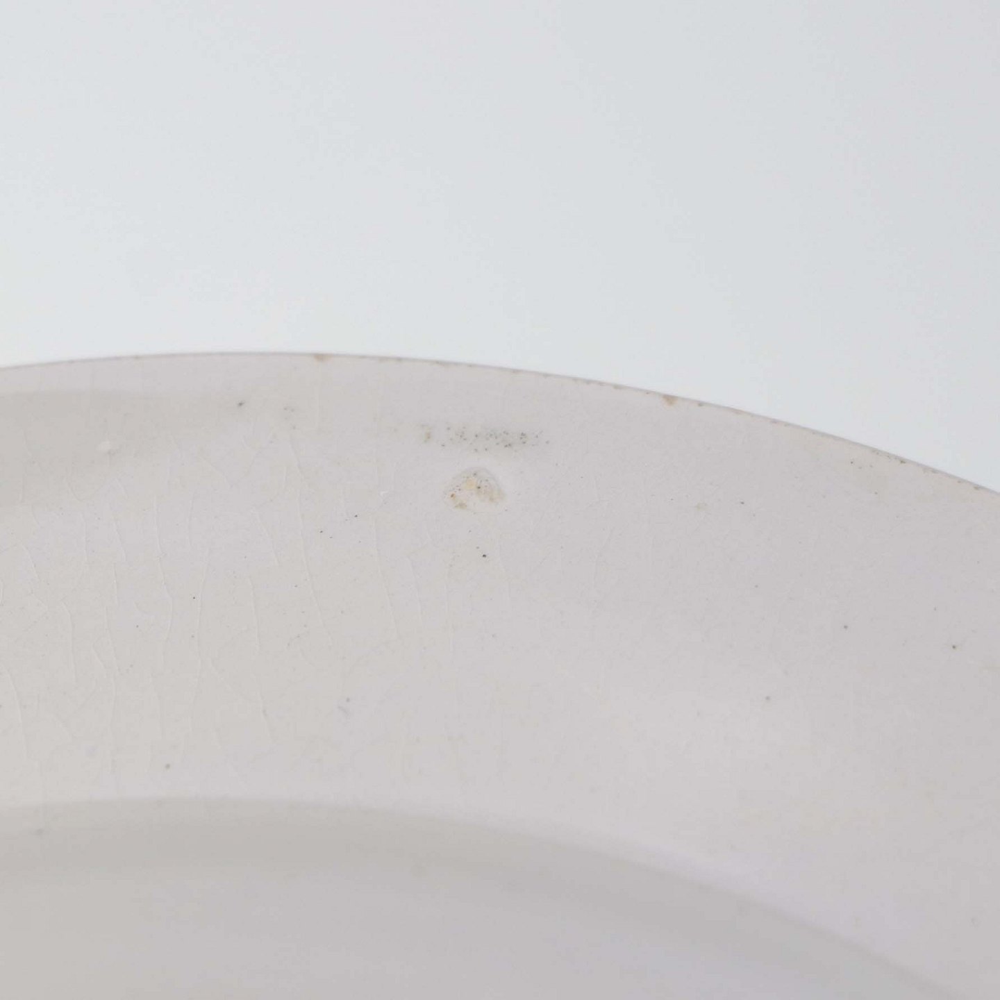 Fremstår med krakkeleringer i glasuren samt ujævnhed i glasuren.