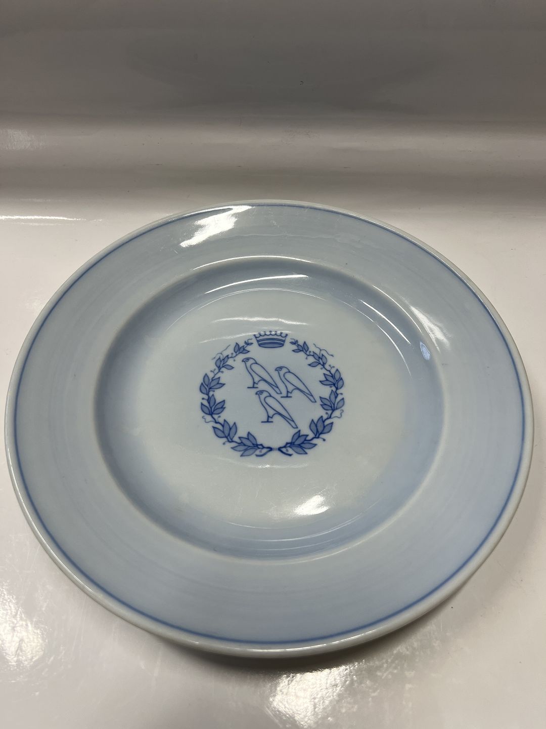 Bing & Grøndahl, Middags tallerkener med tidligt logo fra Hotel 3 Falke på Frederiksberg.