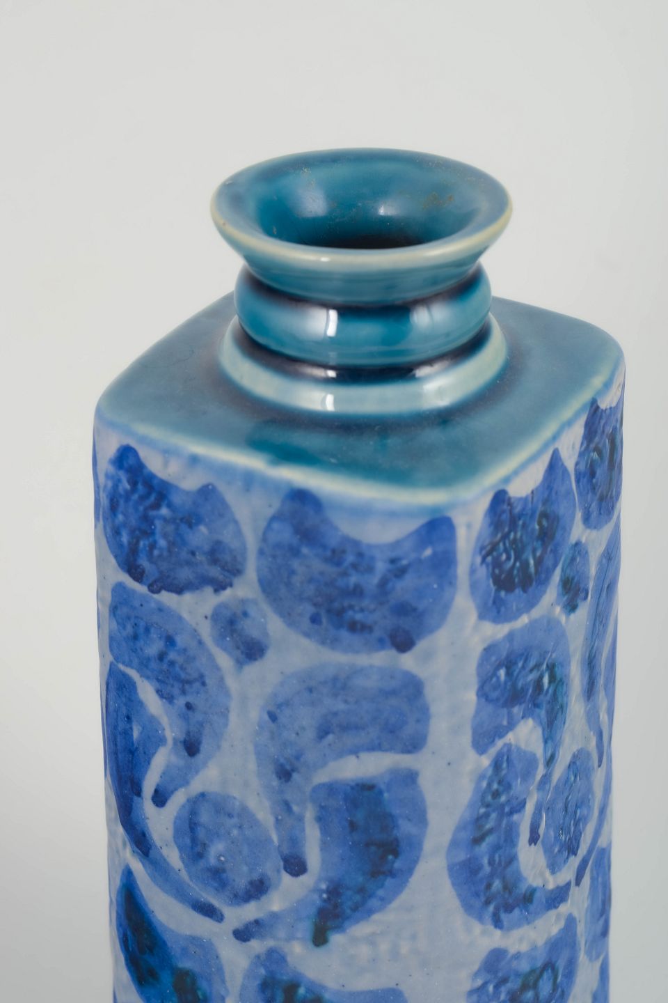 Göran Andersson 1936–2014 var en svensk keramiker og designer, der arbejdede for Upsala Verkstad i 1960’erne. Han er kendt for sit stringente formsprog kombineret med grafisk stærke, håndmalede dekorationer, ofte i klare blå og grønne farver. Hans arbejder afspejler periodens modernistiske idealer med fokus på rytme, gentagelse og balanceret ornamentik og udgør et markant kapitel i svensk studiokeramik fra efterkrigstiden.