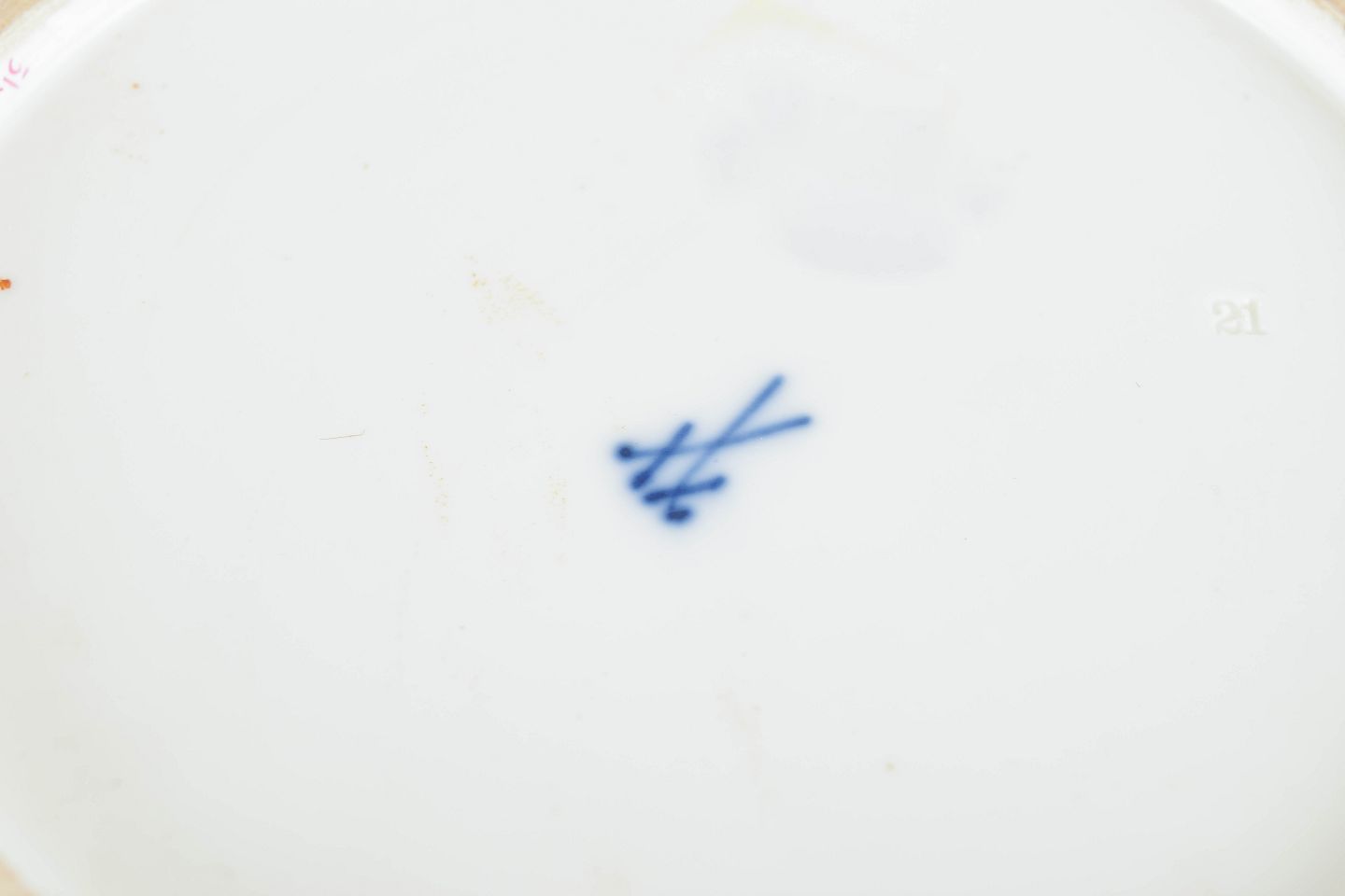 Mærkning: Mærket på undersiden med Meissens krydssværd. 1. sortering.