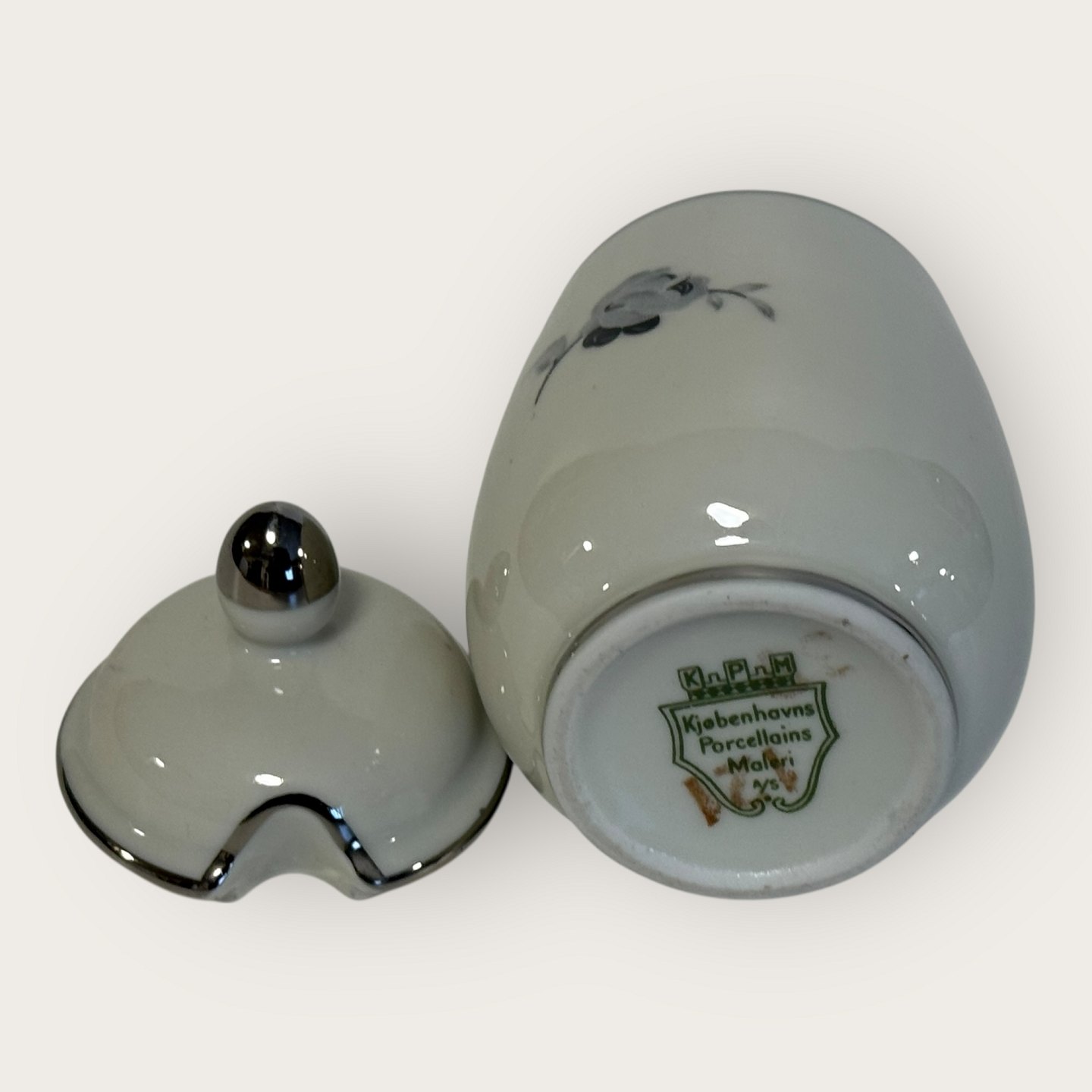 Sort rose, med Plantin kant, KPM, Lyngby, Sennepskrukke, 9cm høj *Pæn stand*