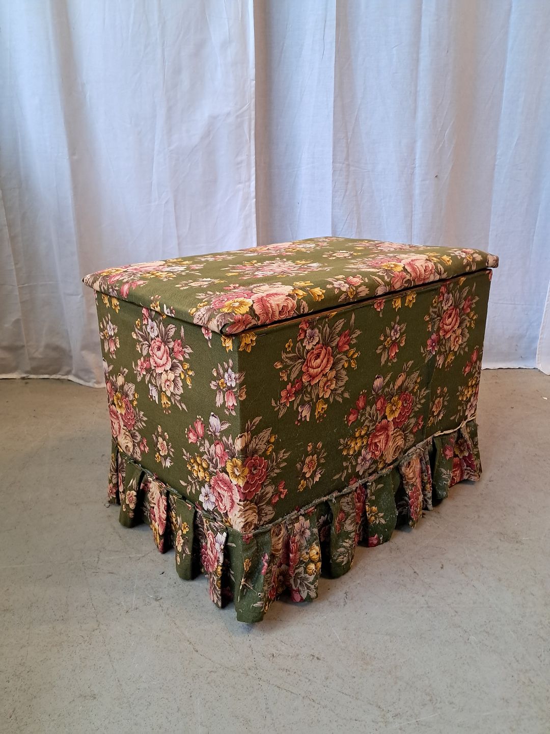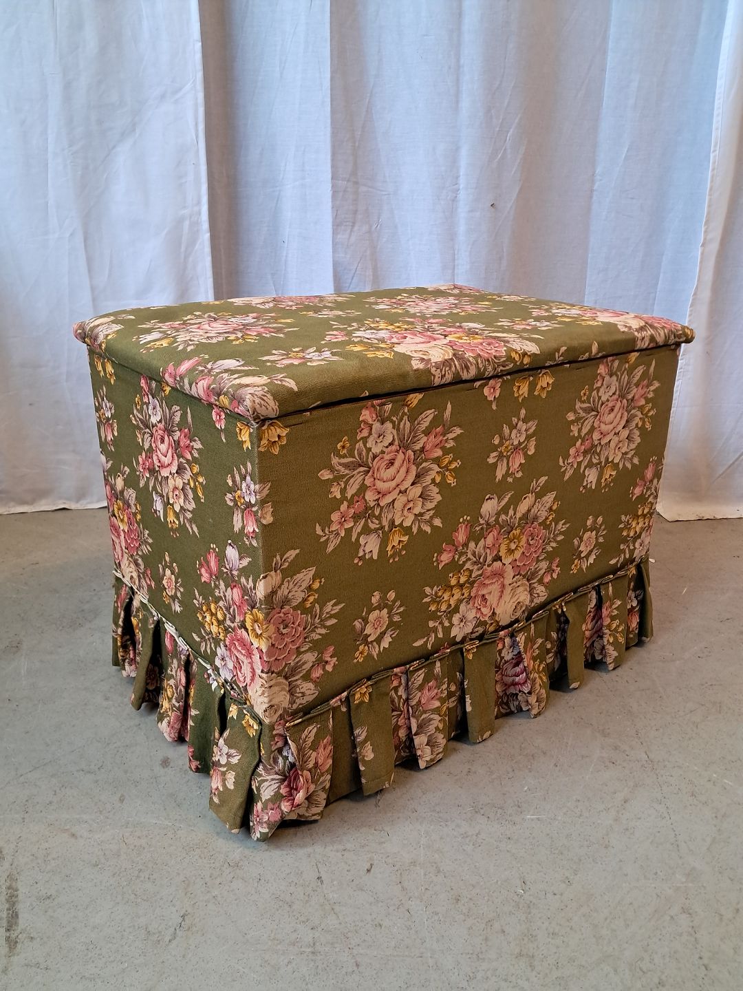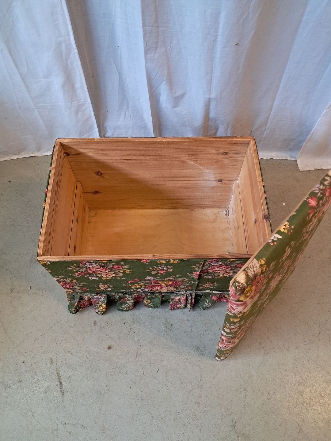 Puf i massivt fyrretræ med stof beklædning, fra 1940erne.
