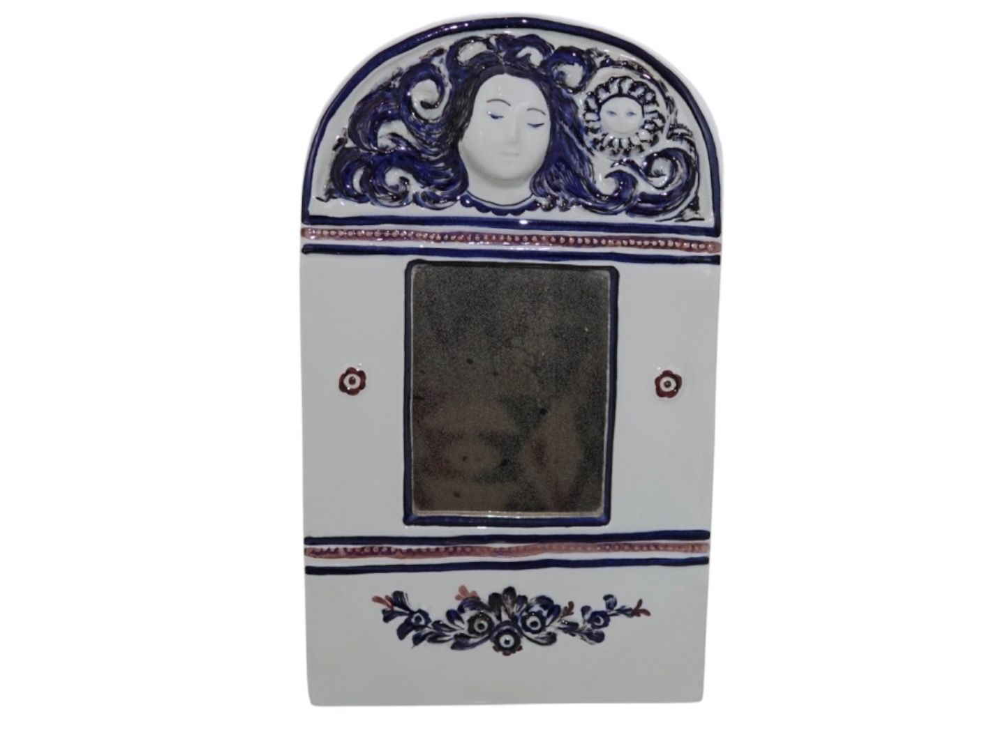 Royal Copenhagen Fajance Tenera, lille og sjældent spejl med ansigter.