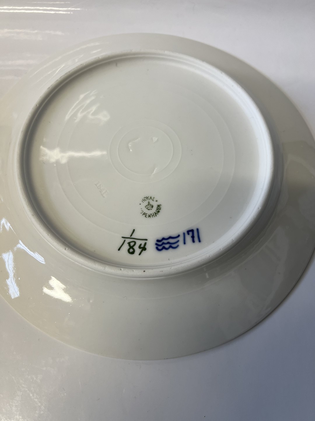 Royal Copenhagen Musselmalet Riflet, helt flad lille middagstallerken.