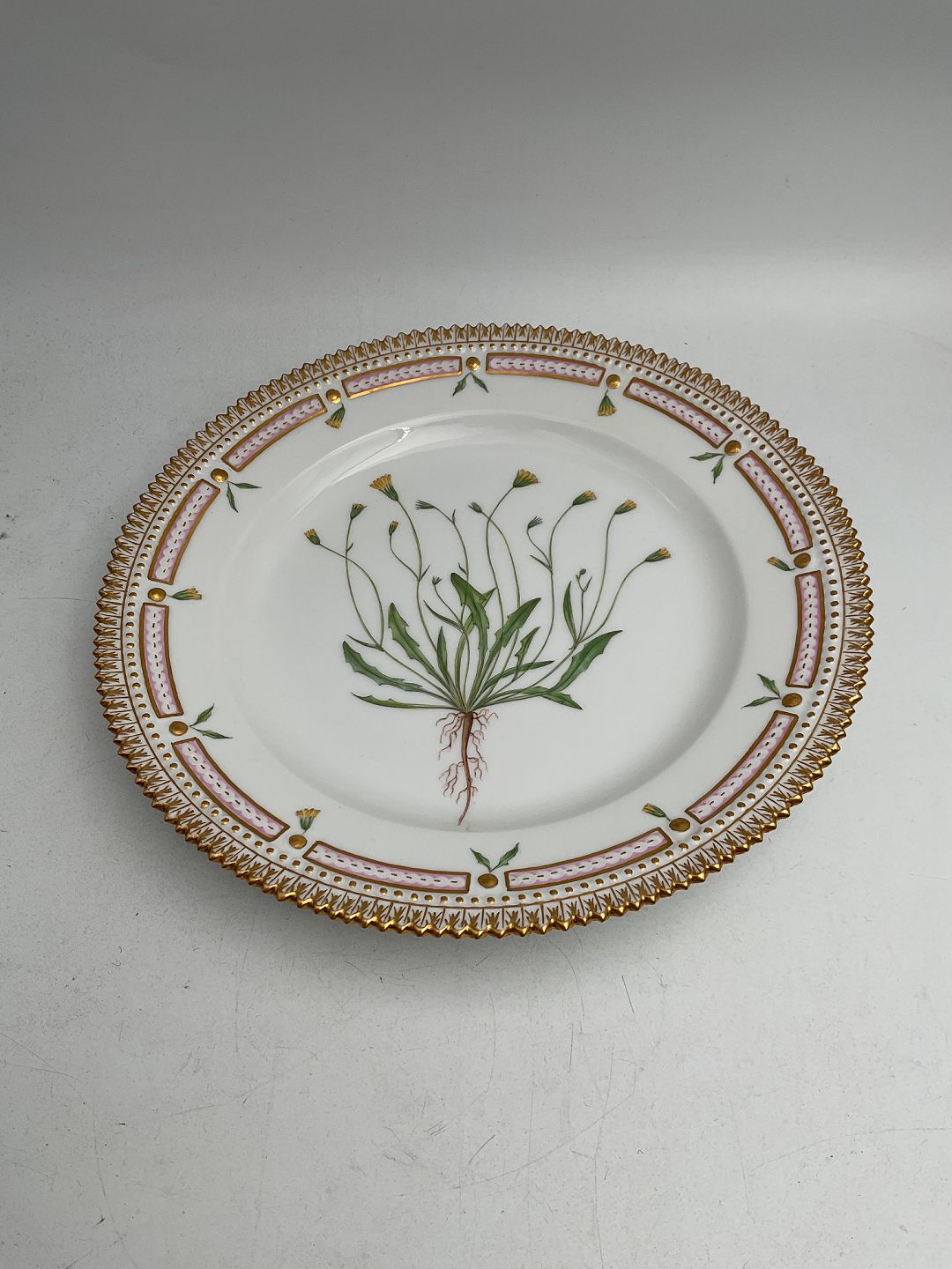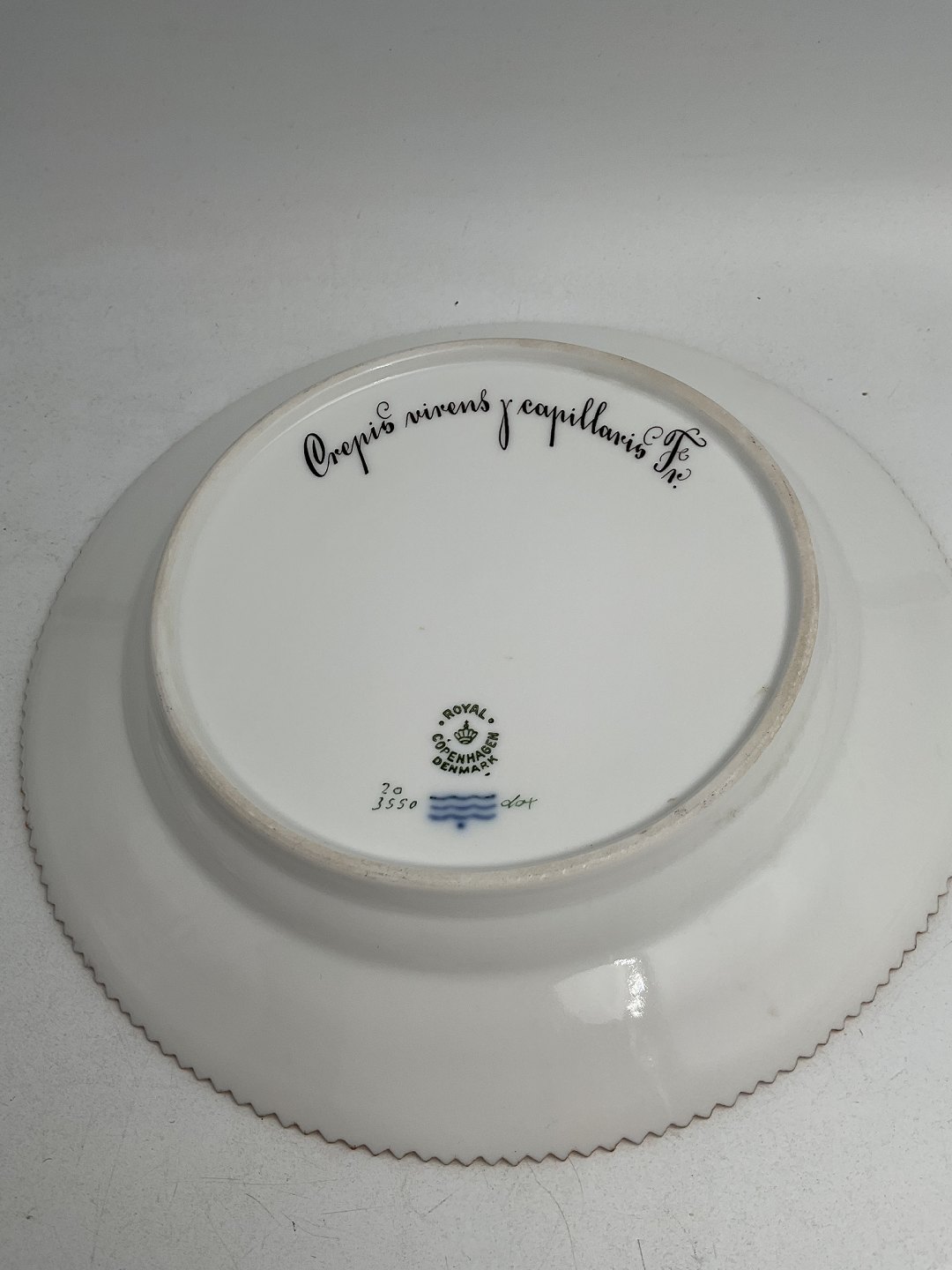 Royal Copenhagen Flora Danica Frokosttallerken No. 20/3550 Måler 22 cm. (8.66 inch) 1. Sortering. Latinsk navn: Crepis virens Alfa capillaris Fr.
