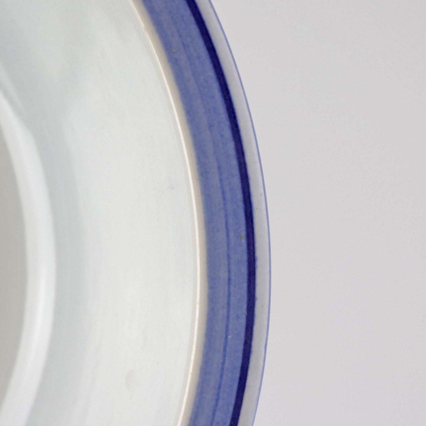 Fajancestel i stelform CA med dekoration af abstrakt motiv i blå og lyseblå på en råhvid baggrund.