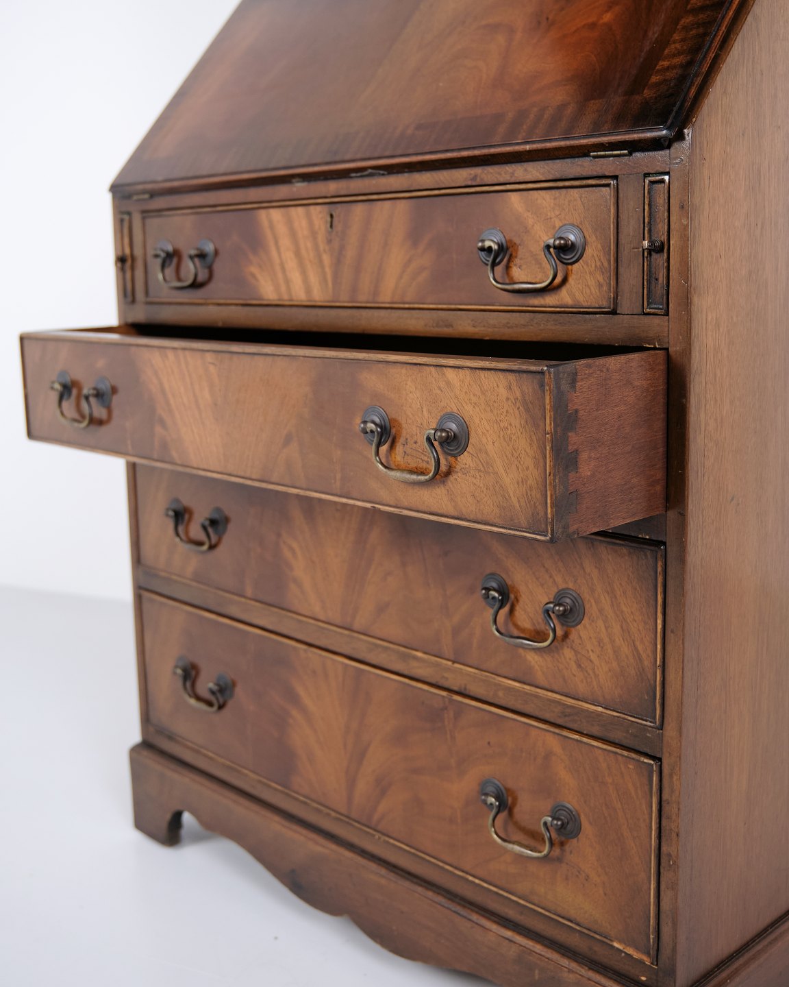 Sekretær med Skriveklap og Vitrine i Mahogni, Engelsk Stil år 1890