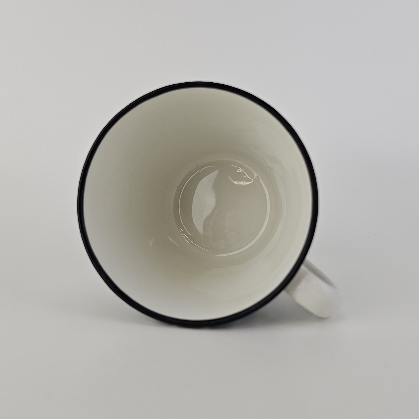 Håndmalet kop med underkop i fajance fra stellet Zebra med mønster i sorte og hvide striber.