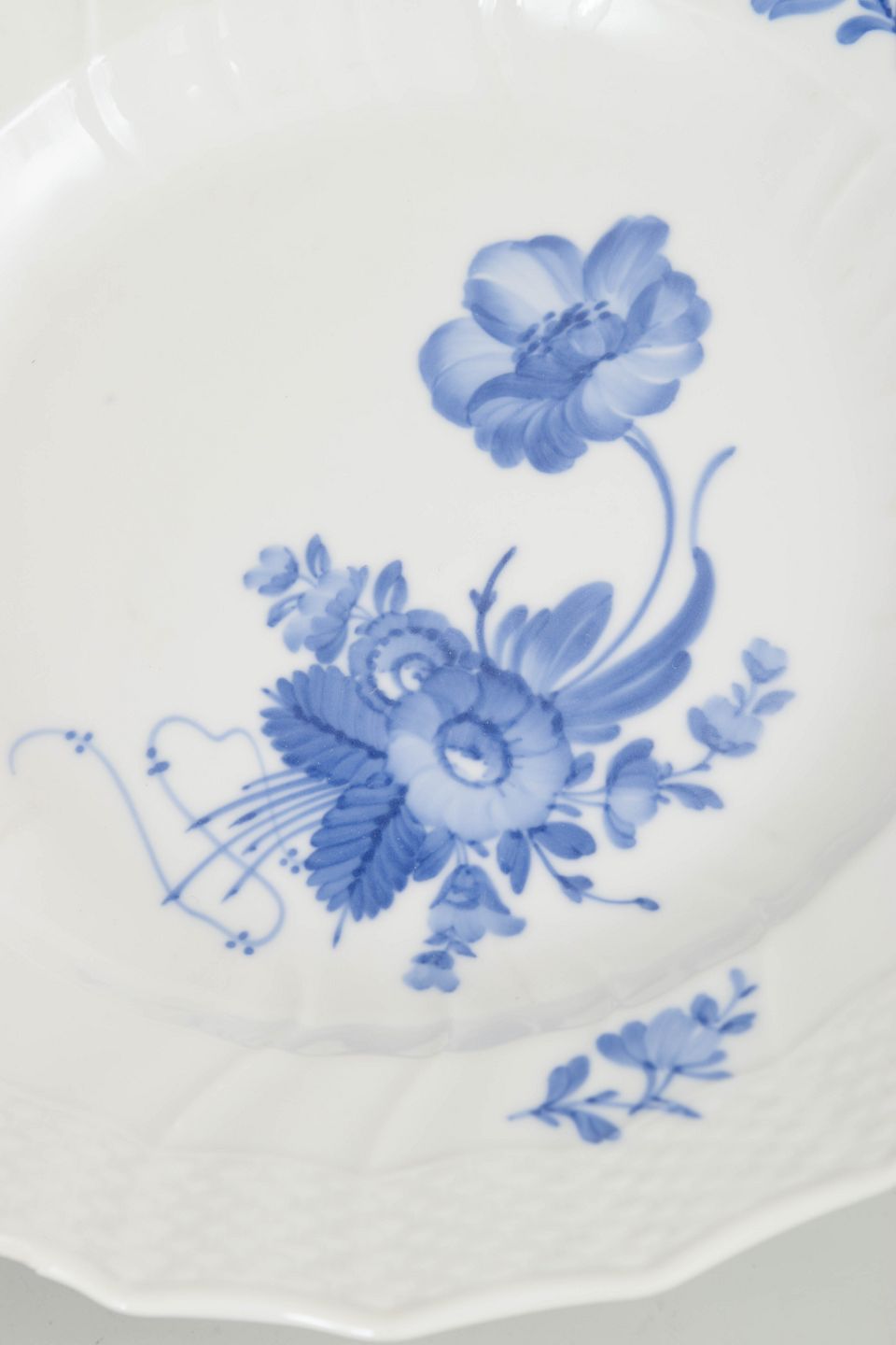 Royal Copenhagen blev grundlagt i 1775 i København under kongelig bevilling. Fabrikken er internationalt anerkendt for sit håndmalede porcelæn og høje kunstneriske kvalitet. Blå Blomst Svejfet blev introduceret i 1700-tallet og videreført gennem det 20. århundrede og er kendetegnet ved sin naturalistiske blomsterdekoration og elegante svejfede form.