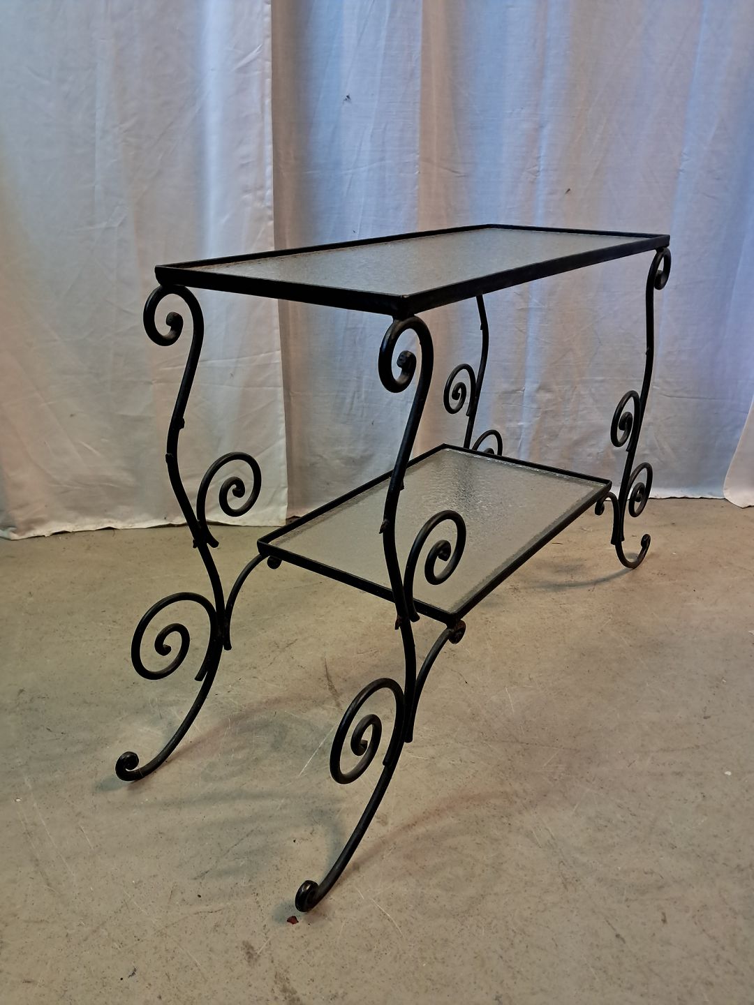 Plantebord i malet metal med glasplader, fra 1940erne.
