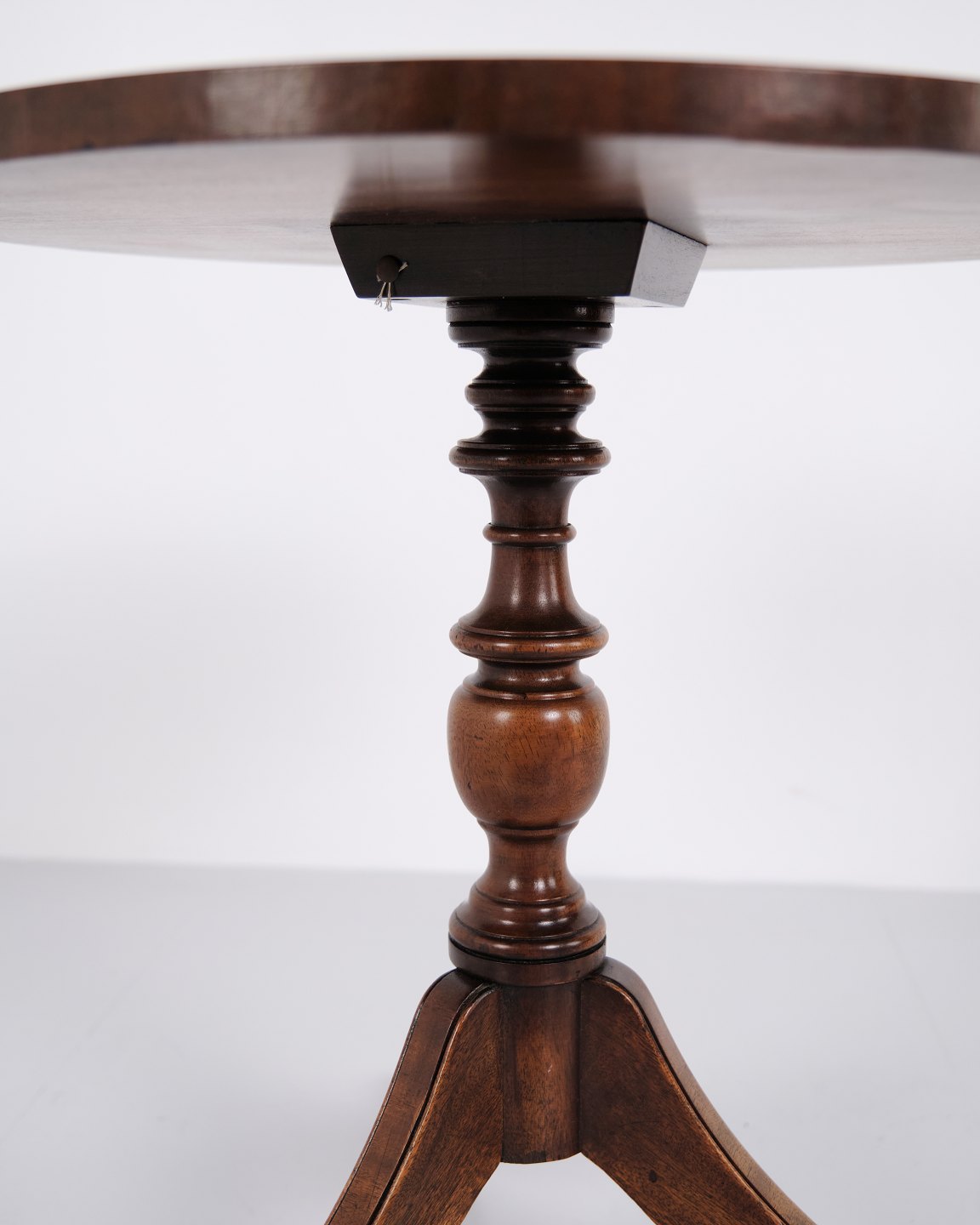 Antique side table in mahogany from the 1890s with a turned column. English style with a classic and decorative expression.