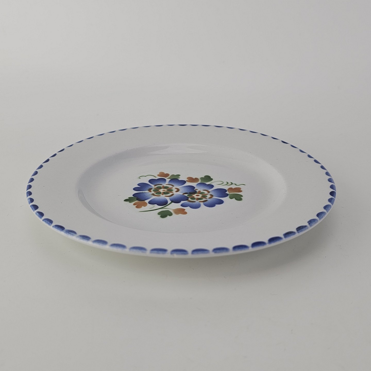 Kagetallerken i fajance fra stellet Geranium II fremstillet i perioden 1927-1940.