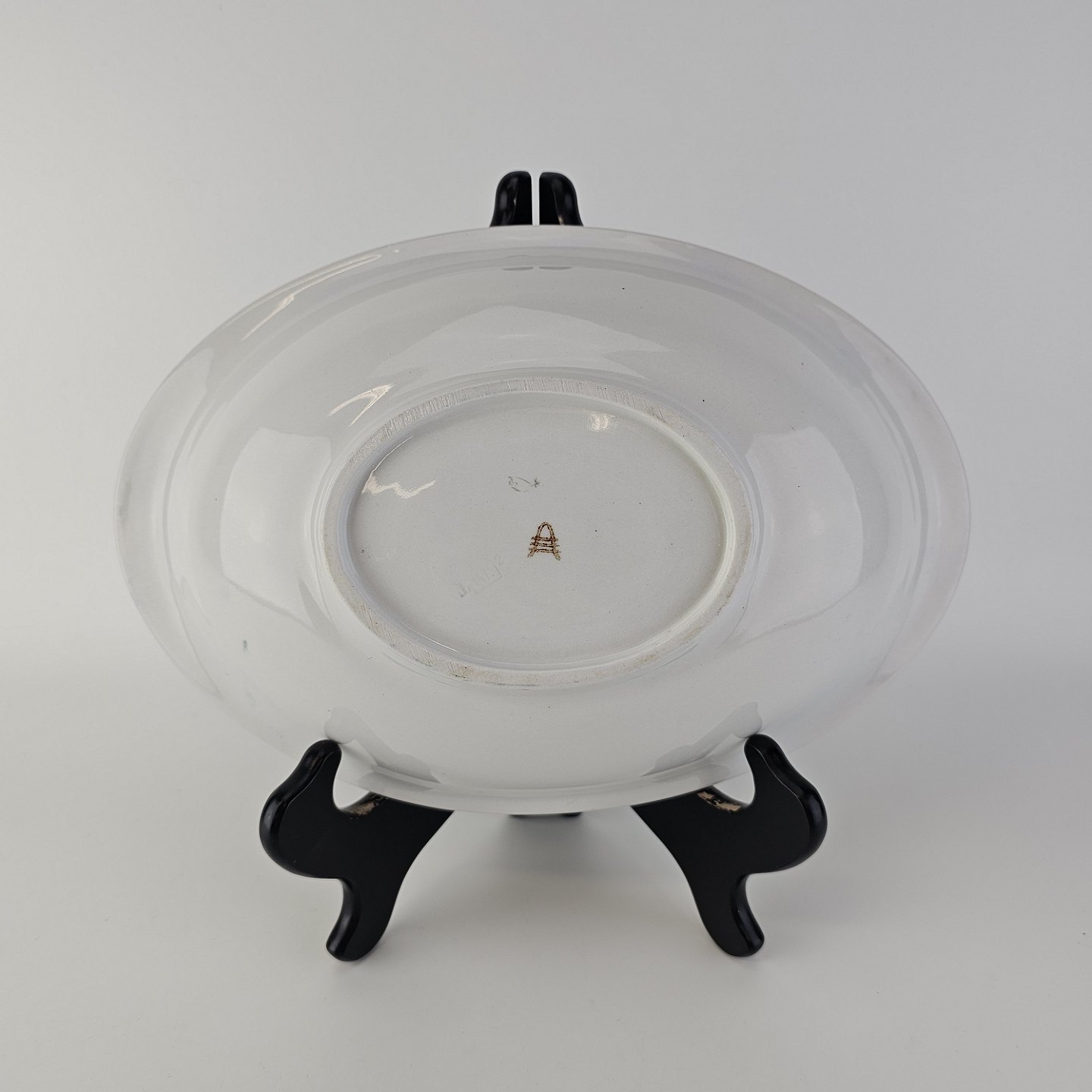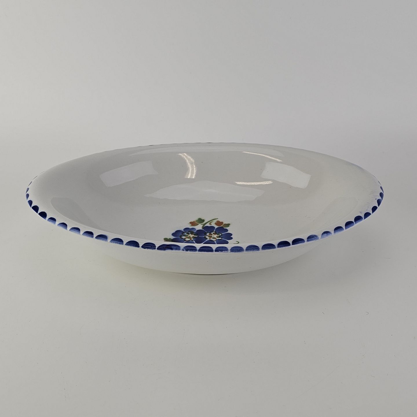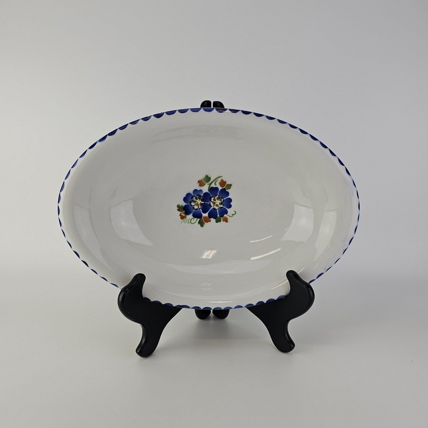Dybt ovalt fad i fajance fra stellet Geranium II fremstillet i perioden 1927-1940.