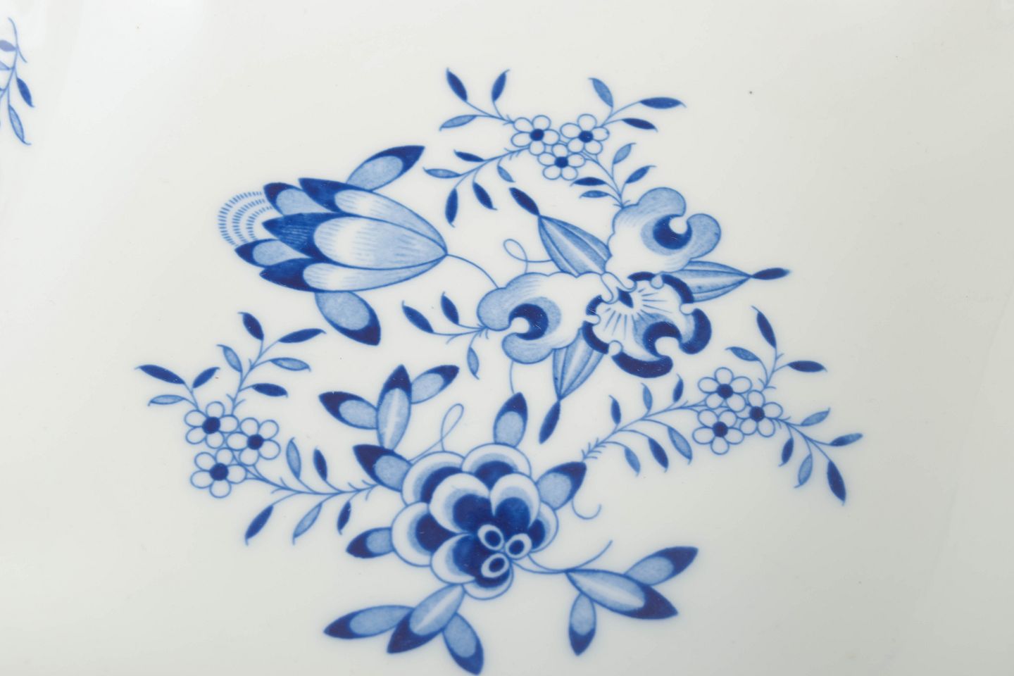 Stor skål i håndmalet porcelæn med Blå Orkidé dekoration. Fremstillet hos Meissen og mærket med Meissens krydssværd. Annulleret med to indridsede streger under bunden.