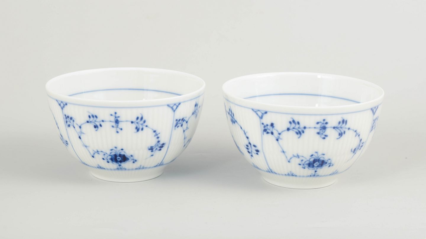 Royal Copenhagen Musselmalet Riflet sæt af to skåle.