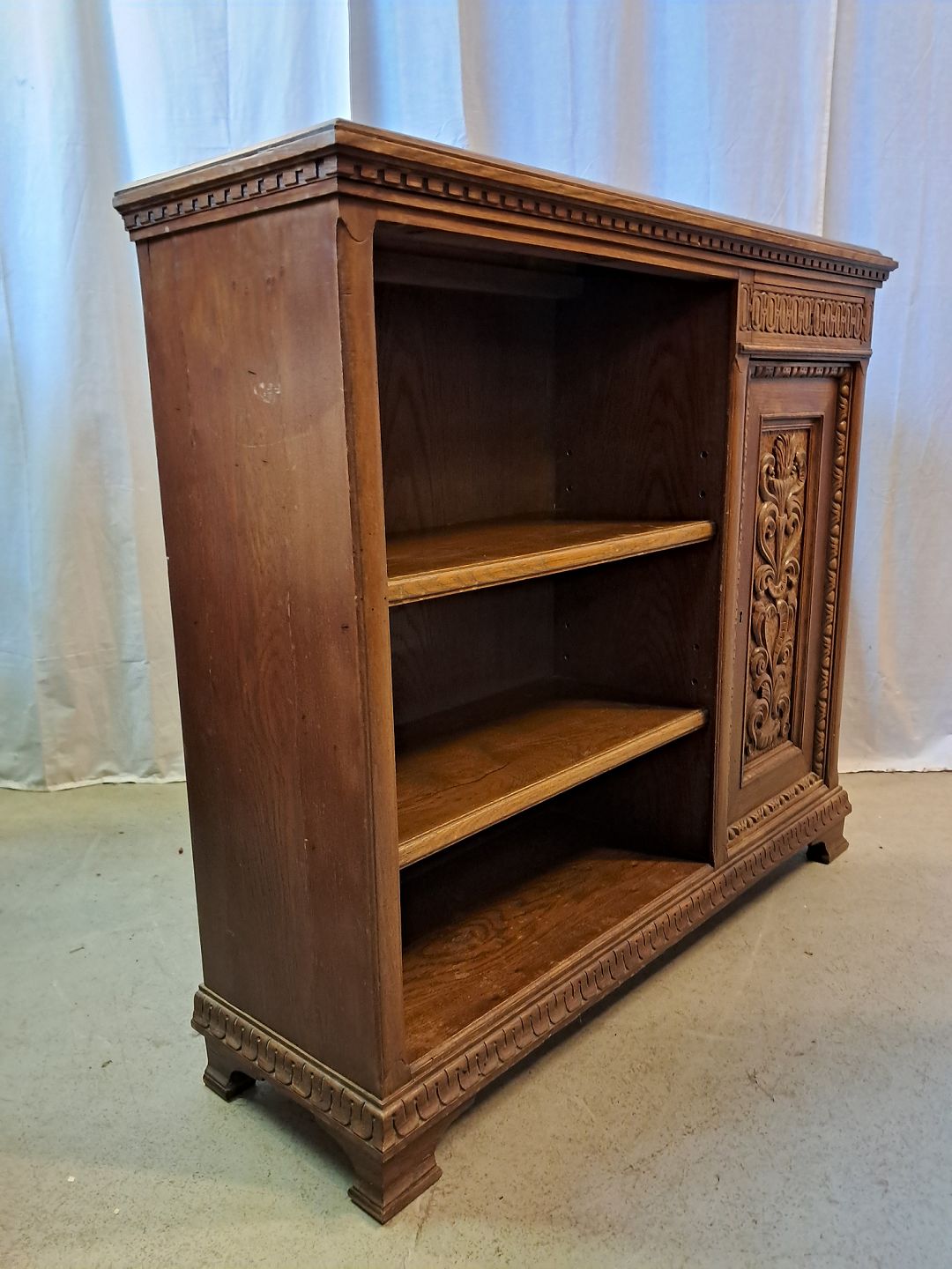 Reol i fineret egetræ, fra 1930erne.