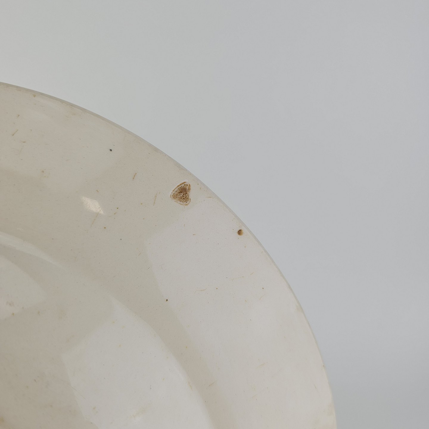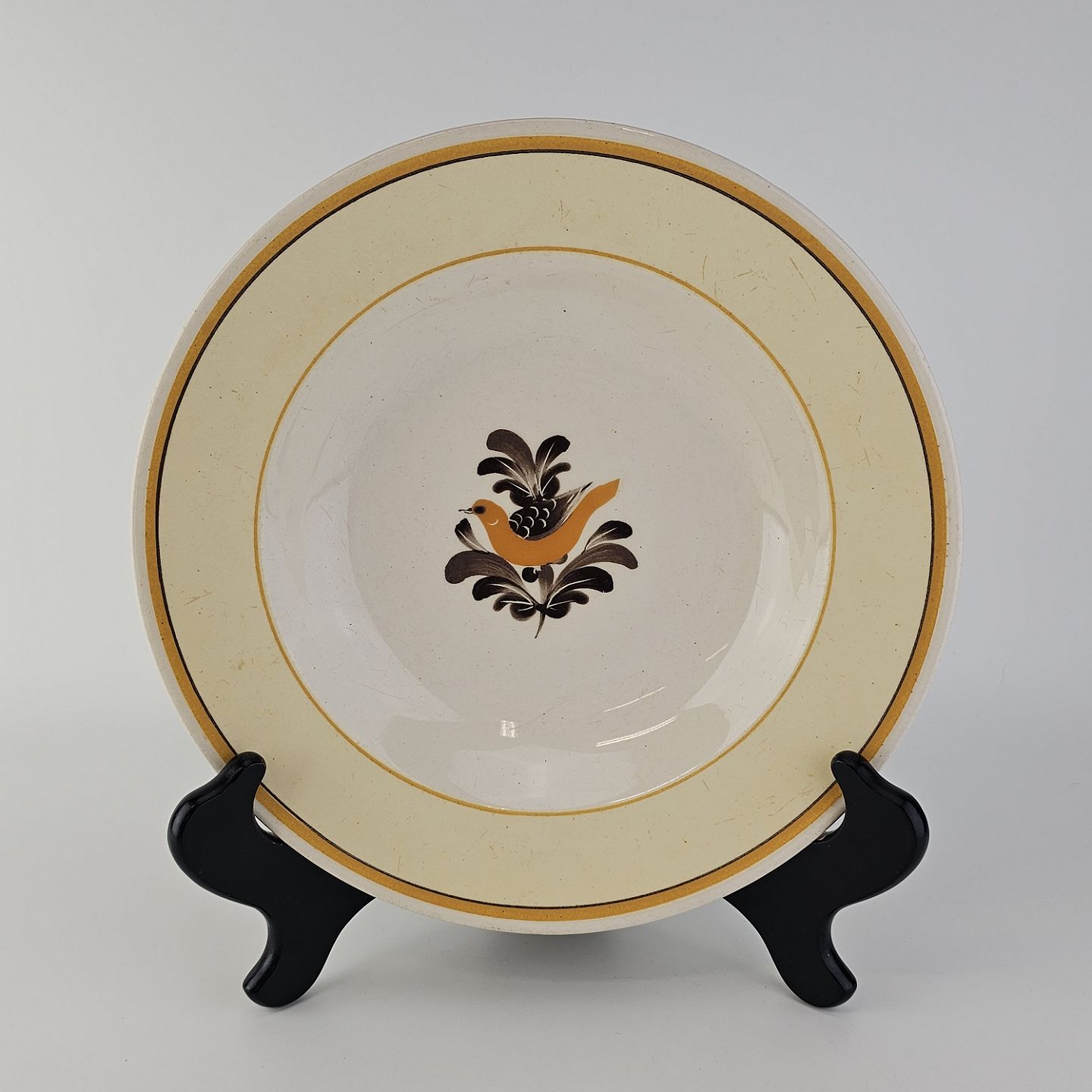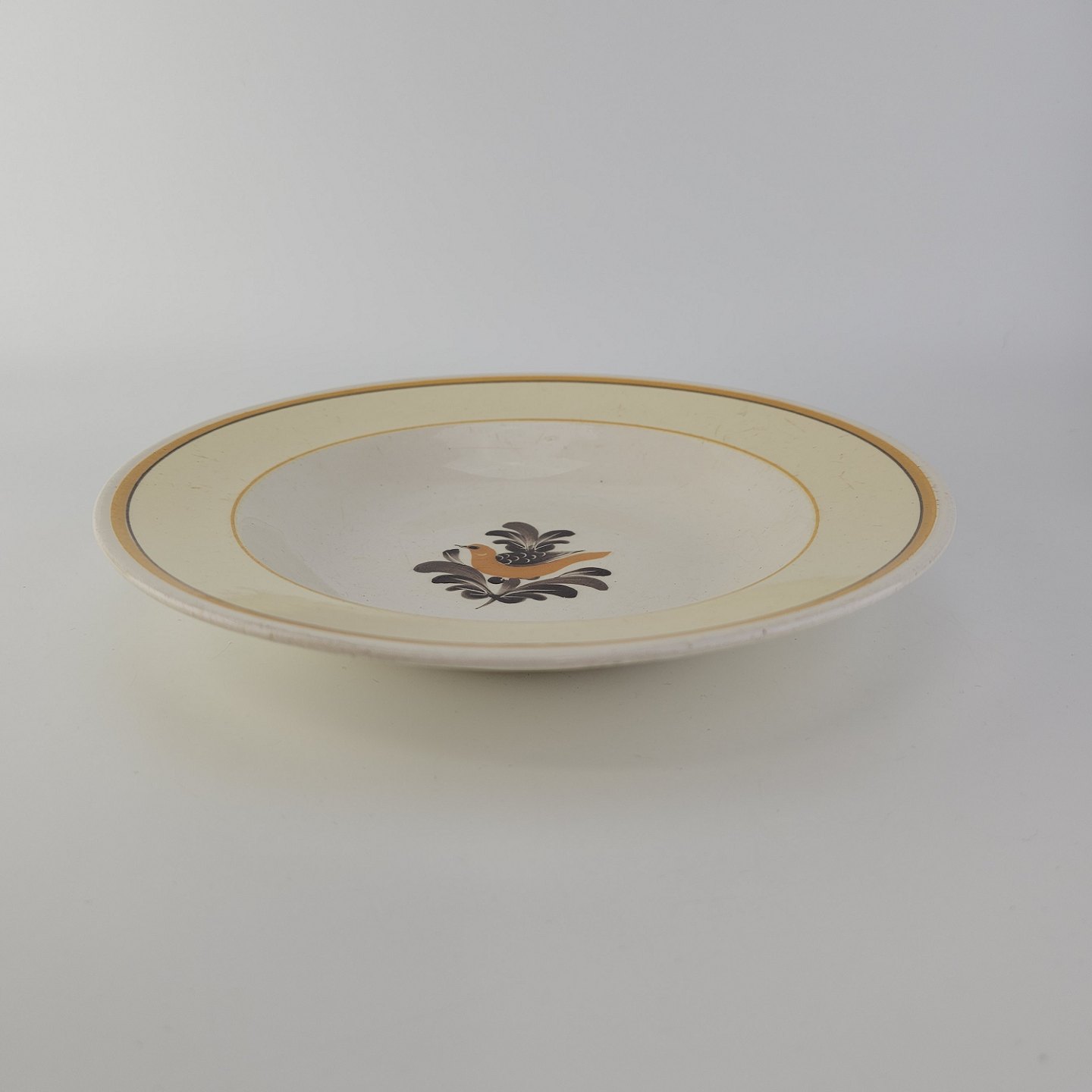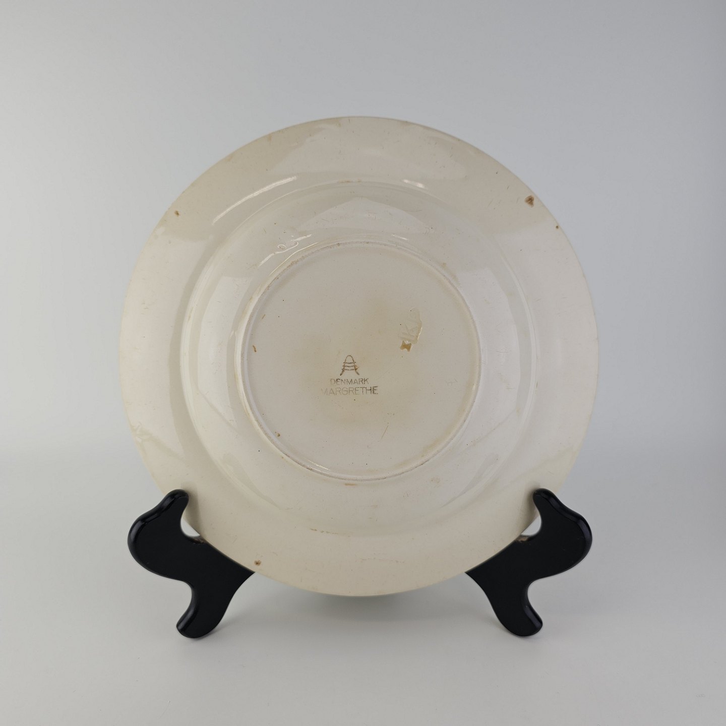 Dyb tallerken i fajance fra stellet Margrethe fremstillet i perioden 1937-1940.