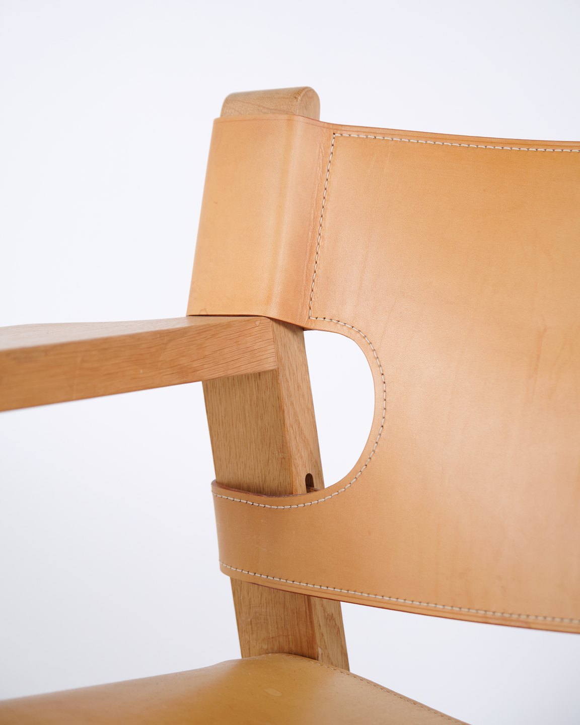 Børge Mogensen Den Spanske Stol Model BM2226 i Naturligt Patineret Kernelæder fra 1960erne