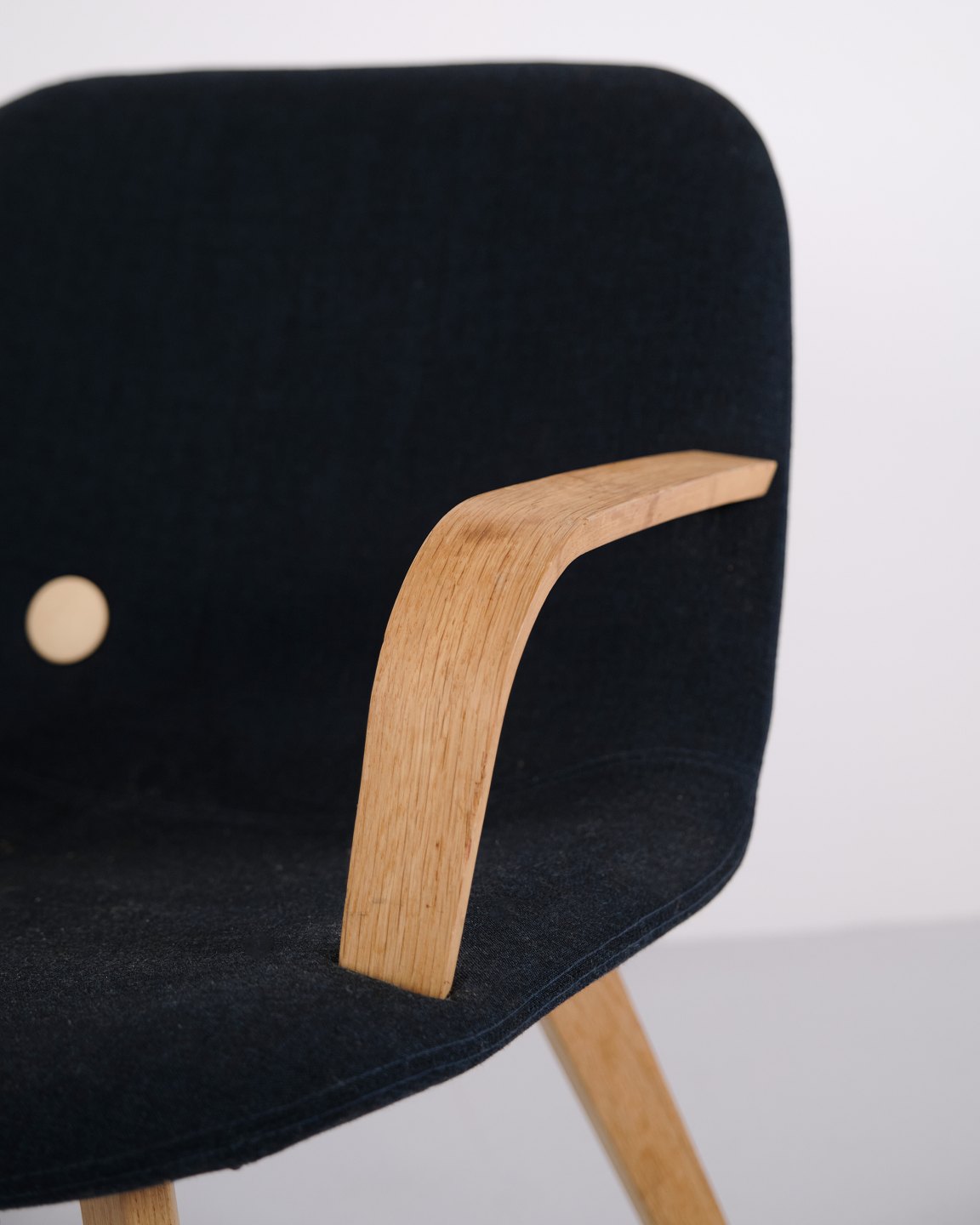 Erik Jørgensen lounge chair model EJ 3 in oak and blue fabric. Danish design with a simple and timeless design language.