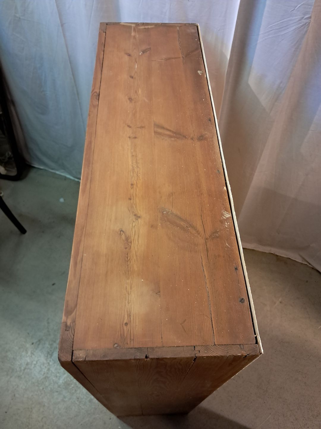 Gammelt køkkenskab i massivt fyrretræ, fra 1920erne.