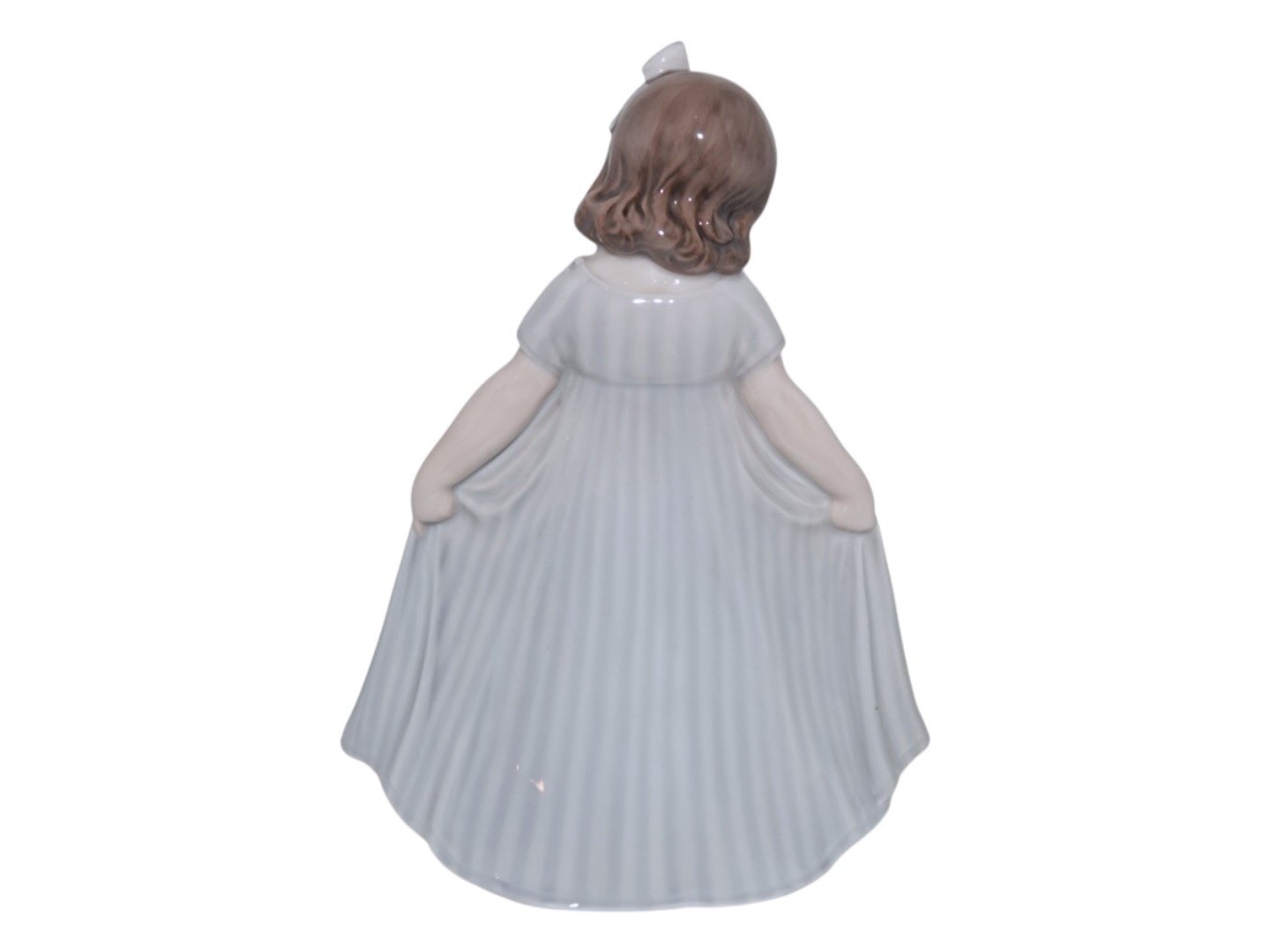 Royal Copenhagen figur af dansende pige i tidlig udgave med lyseblå kjole.