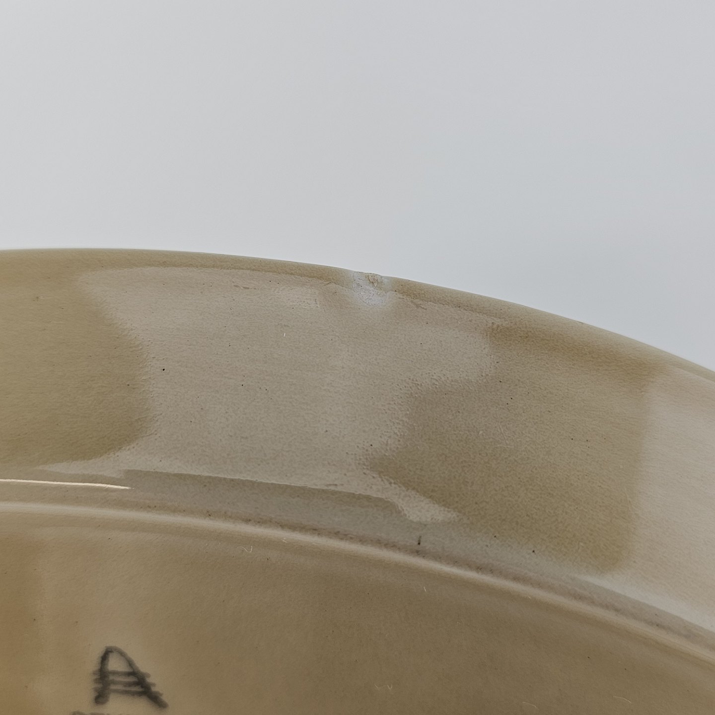 Fremstår med 3 ujævnheder på bunden og kanten