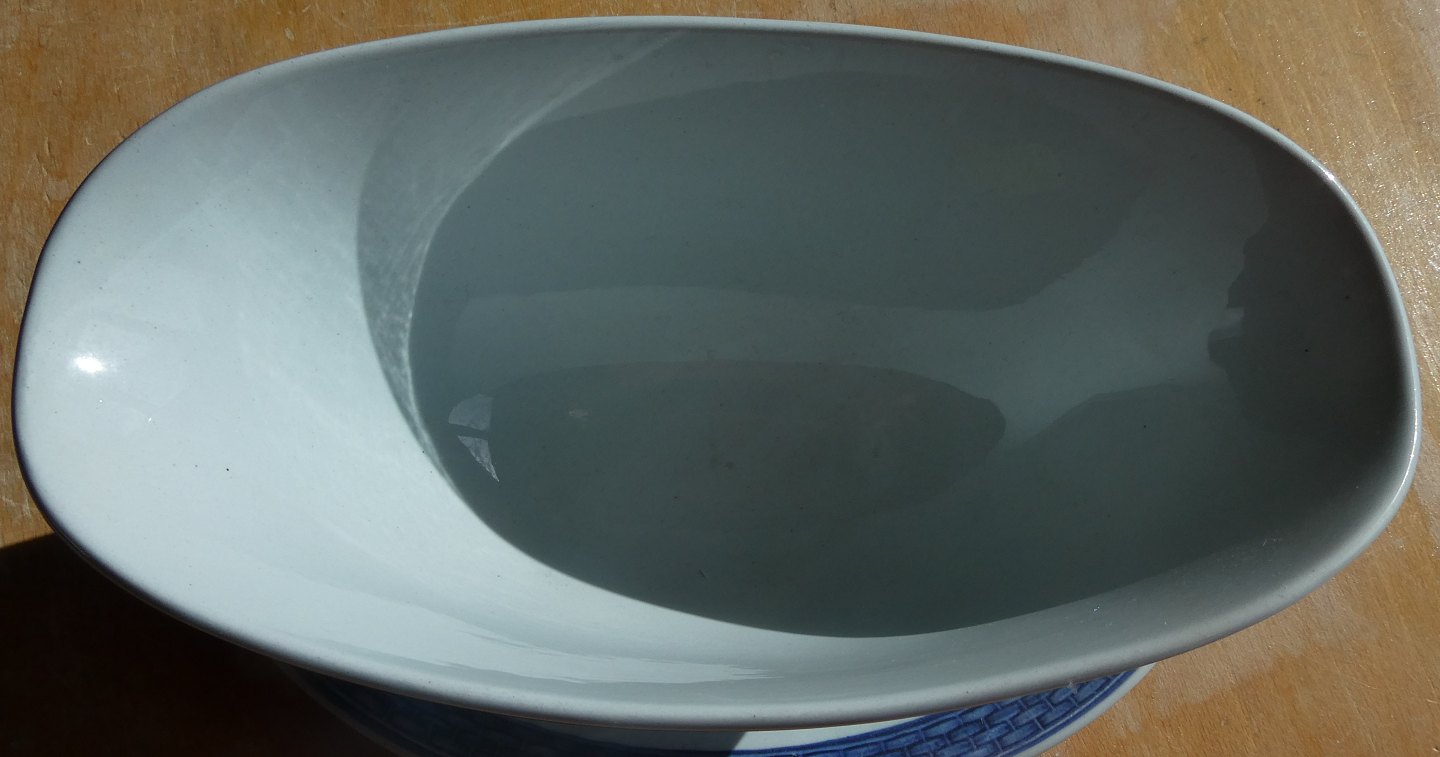 Oval sauceskål eller sovsekande på fast fod nr. 2391 i 1.sort. og i pæn stand med almindelig brugsslitage.