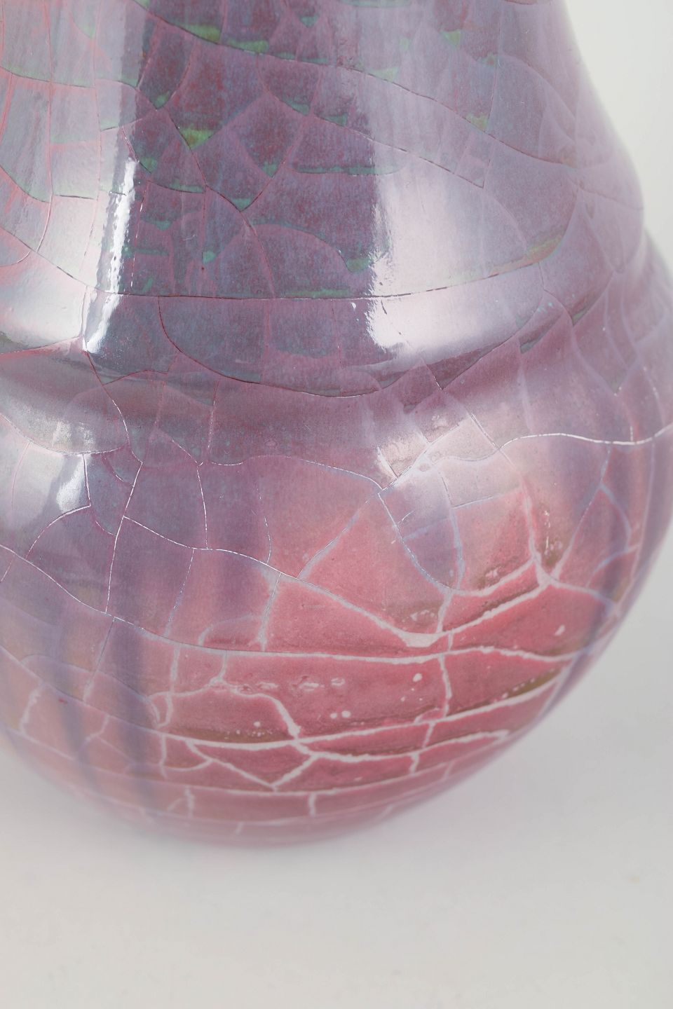 Imponerende balusterformet vase i stentøj med dyb rosa og violet lusterglasur samt dekorativ krakelering, udført i Kählers karakteristiske kunstneriske stil fra slutningen af 1800-tallet.