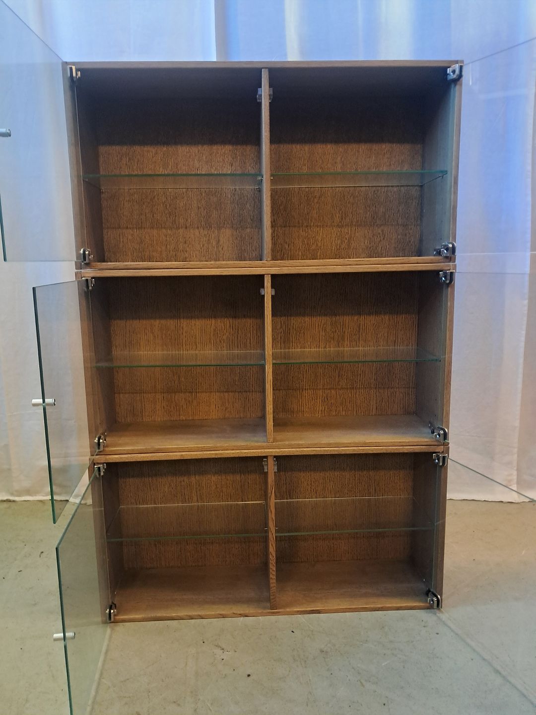 3 Vitrineskabe i massivt egetræ, fra 2000erne.
