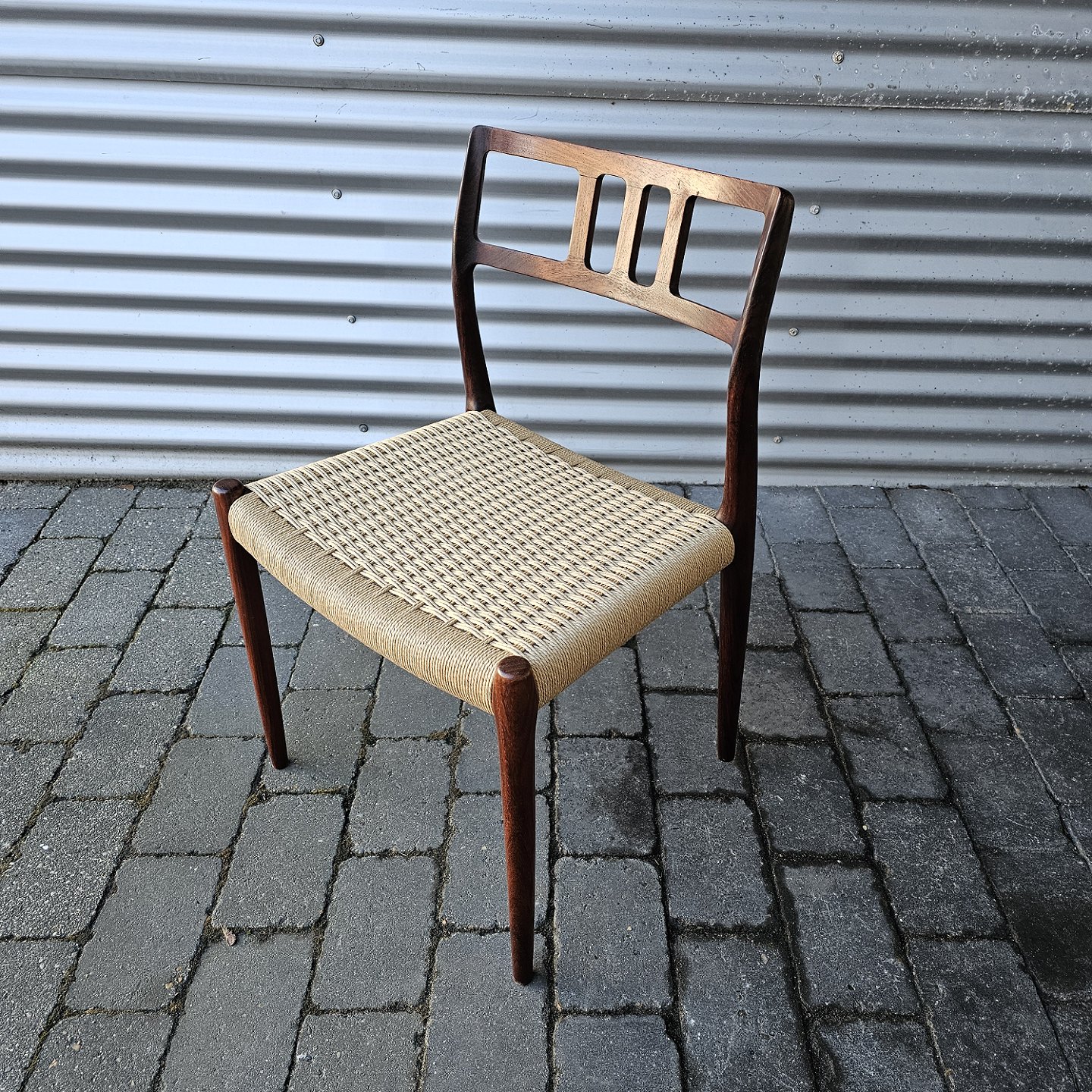 Sæt med fire styk spisebordsstole model 79 i palisander med ny flettede sæder