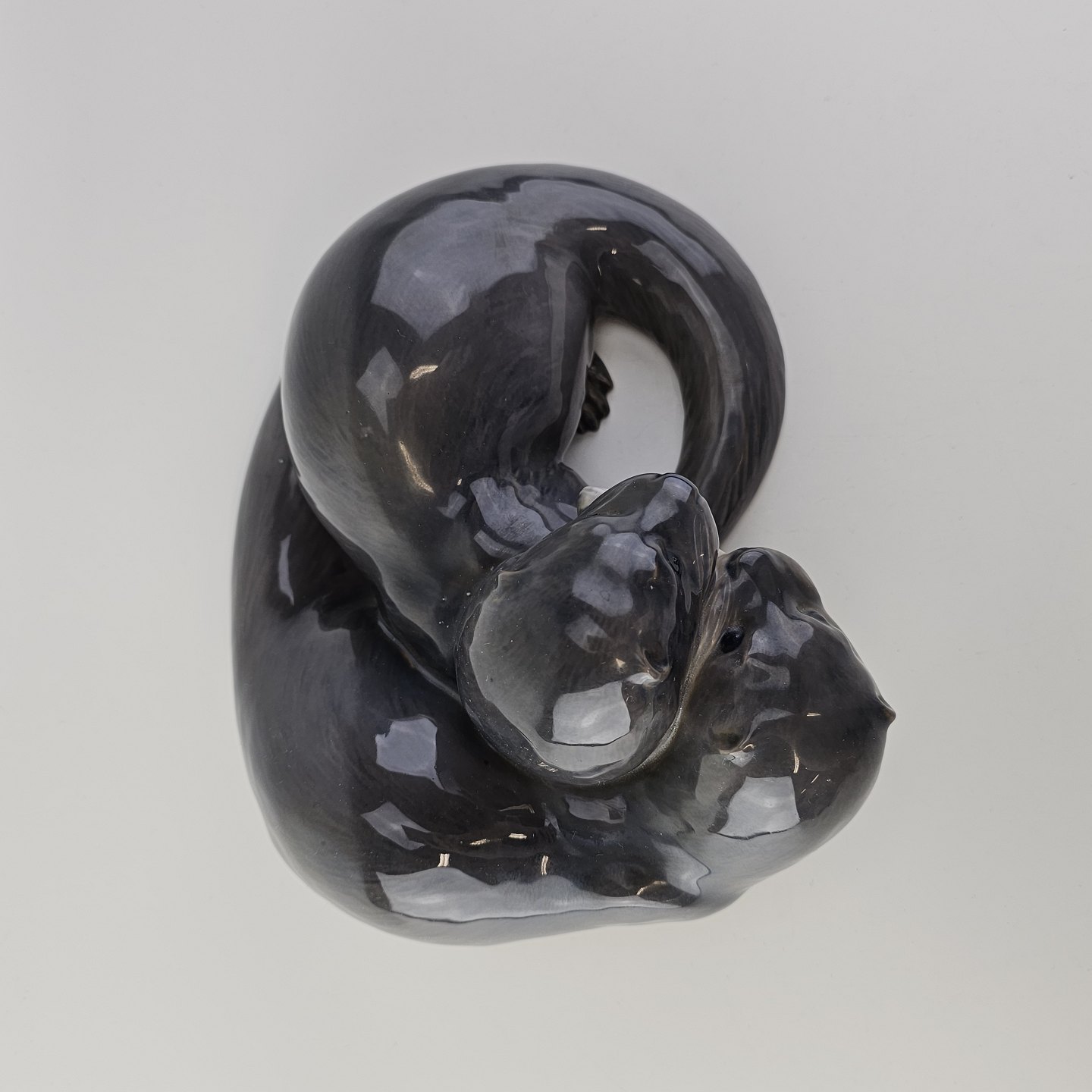 Sjælden figur i kongeligt porcelæn med motiv af to oddere og en fisk