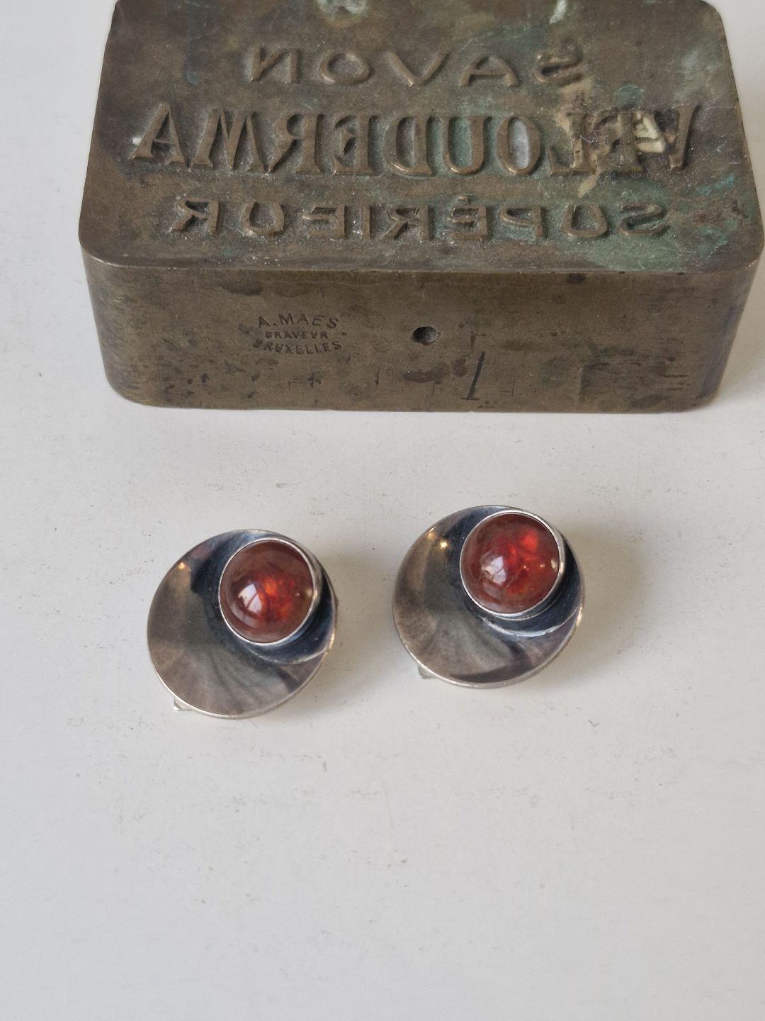 N.E.From vintage øreklips i sterlingsølv og rav