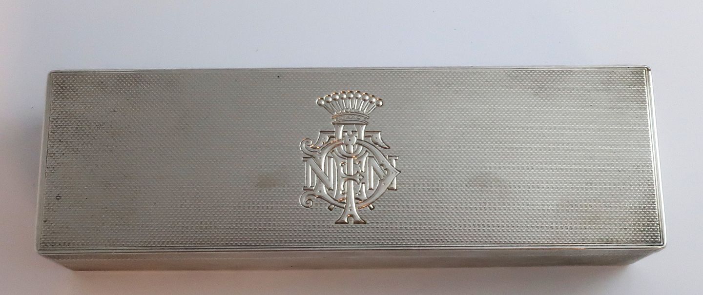 SAZIKOV, ST PETERSBURG. Sølv æske indvendig forgyldt 84 (875). Længde 17,5 cm. Bredde 5,3 cm. Højde 3,5 cm. Produceret 1883.