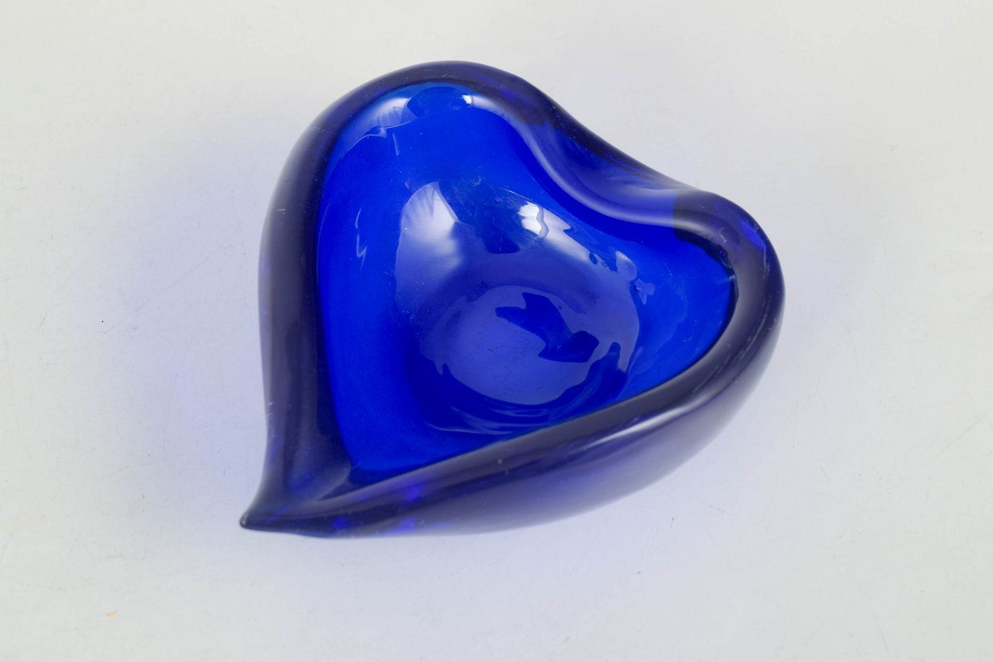 Lille organisk formet kunstglasskål i dyb koboltblå glas med blødt bølgende kant. Signeret “Veronese Seguso Murano” under bunden.