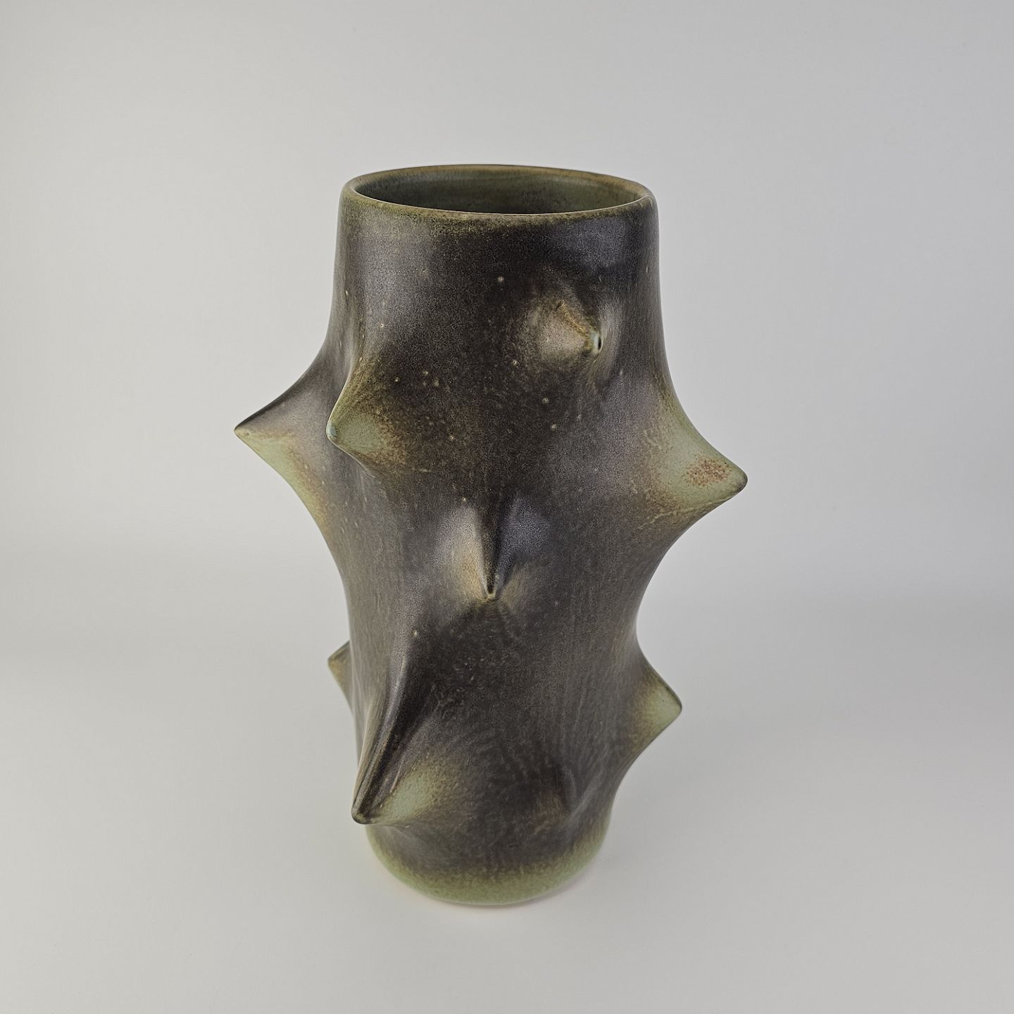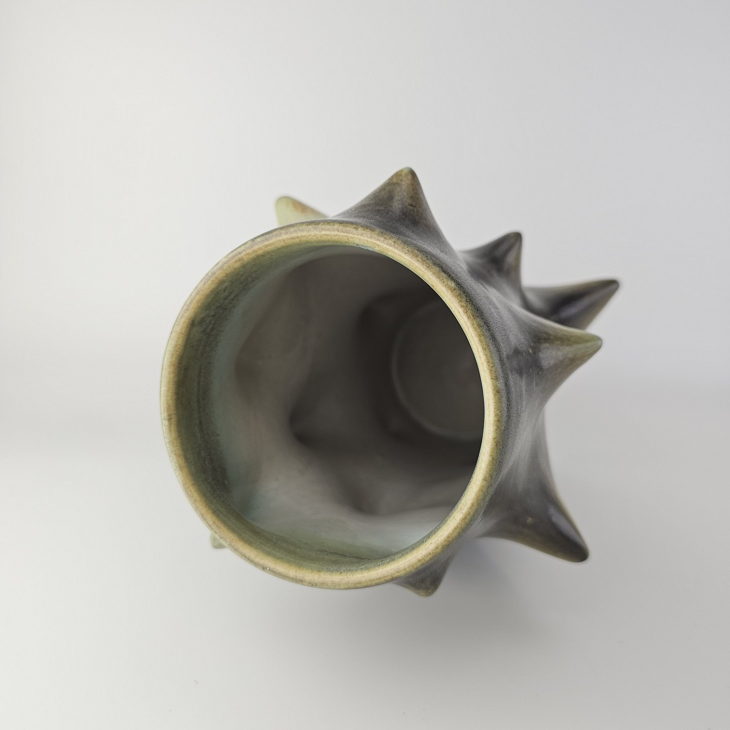 Vase i glaseret stentøj med motiv af en rosenthorn