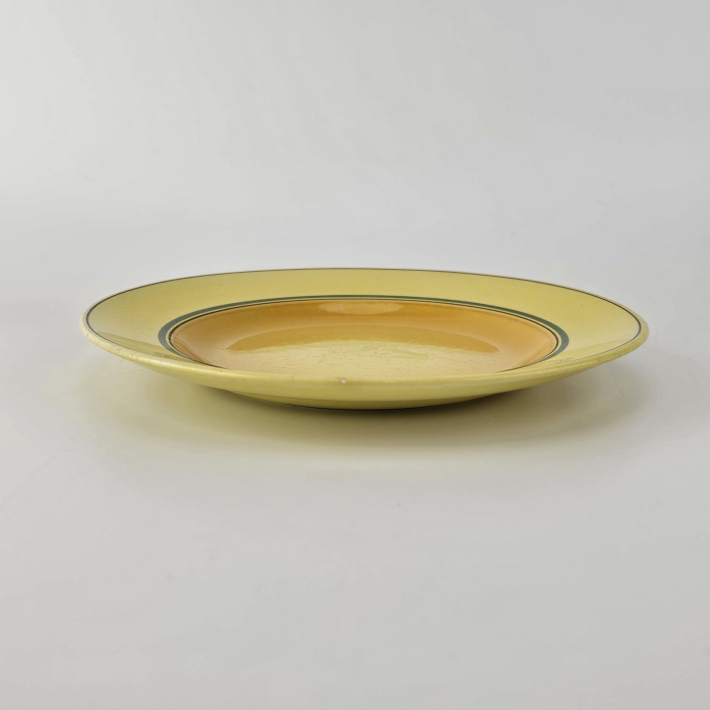 Flad tallerken i fajance fra stellet Gertrud fremstillet i perioden 1933-1939.