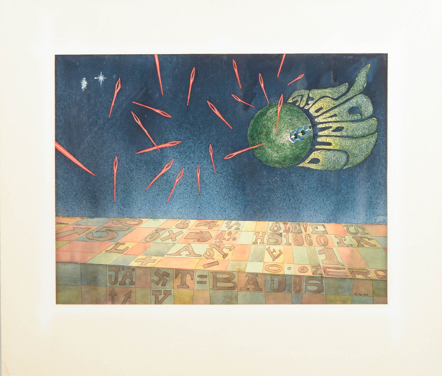 Håkan Stenberg is a Swedish visual artist active during the second half of the twentieth century. His works often explore surreal and symbolic imagery, combining abstract forms, cosmic motifs, and graphic signs into poetic compositions. Executed frequently in mixed techniques, his works reflect the experimental Scandinavian art scene of the 1960s and 1970s.