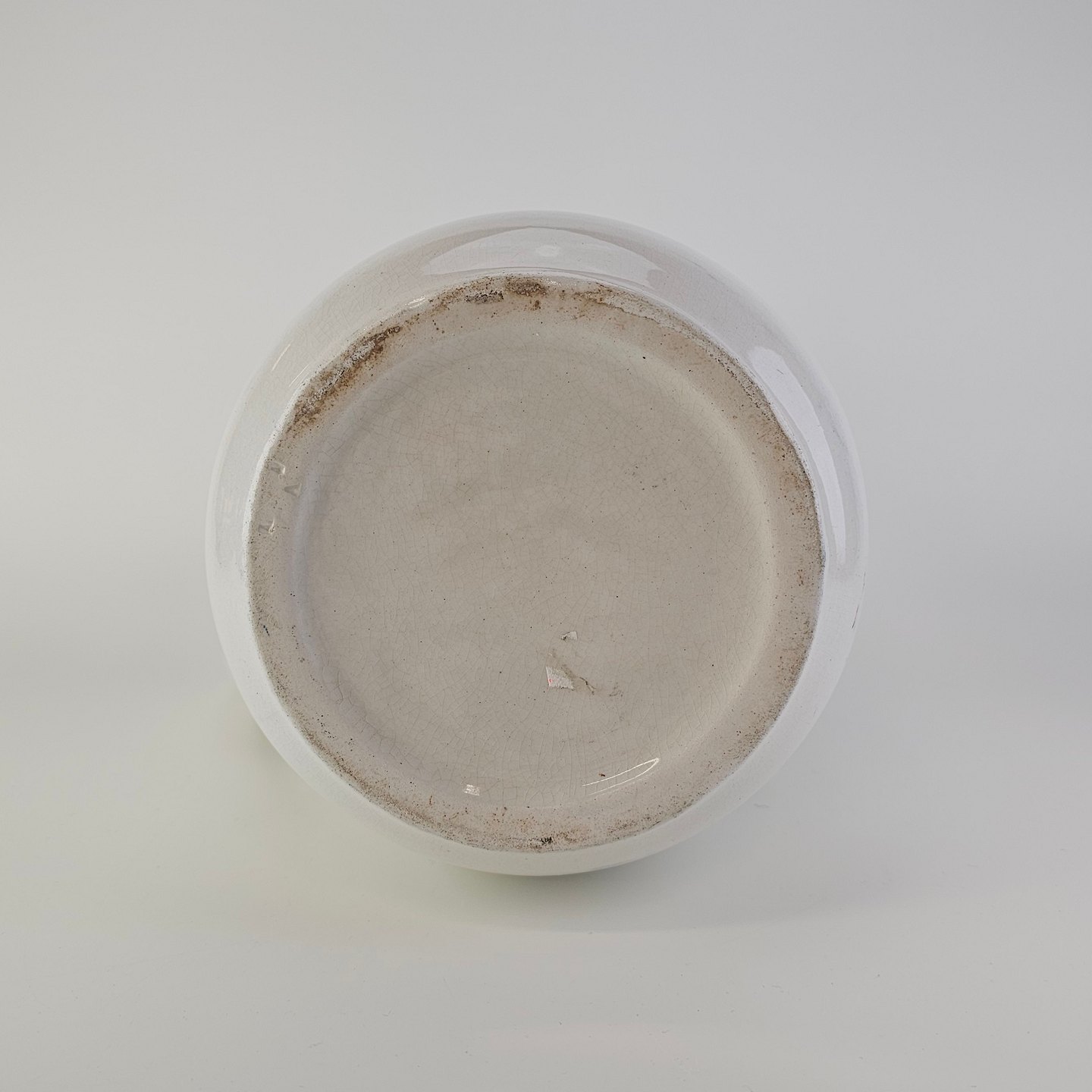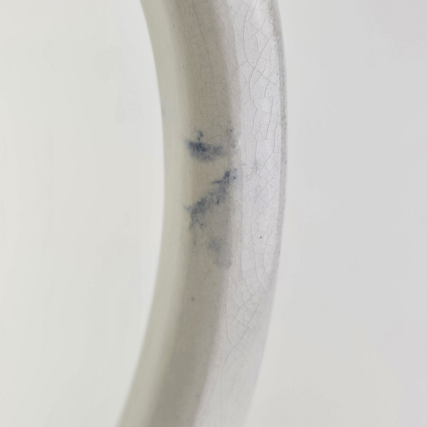 Stellet er i hvid fajance og håndmalet med dekoration af blå violer