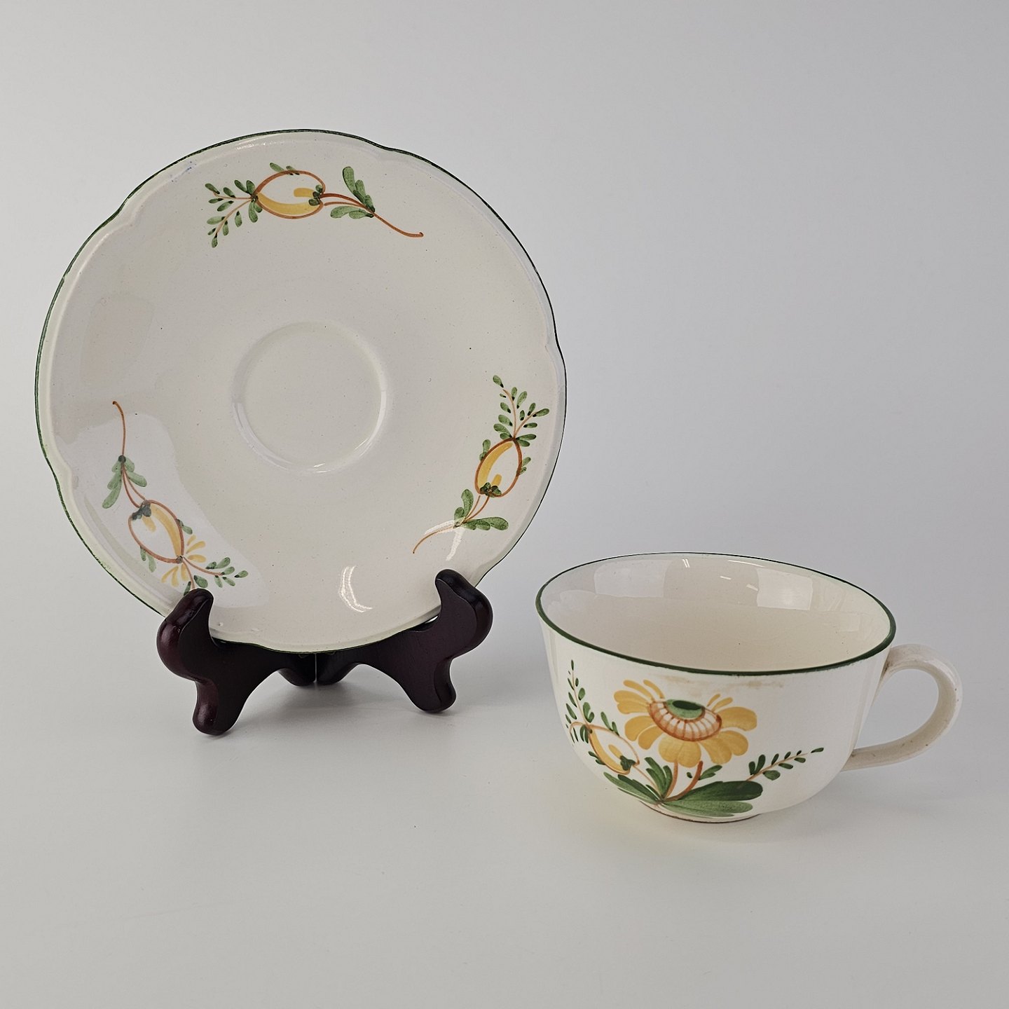 Kaffekop med underkop i fajance fra stellet Maj fremstillet i perioden 1941-1966.