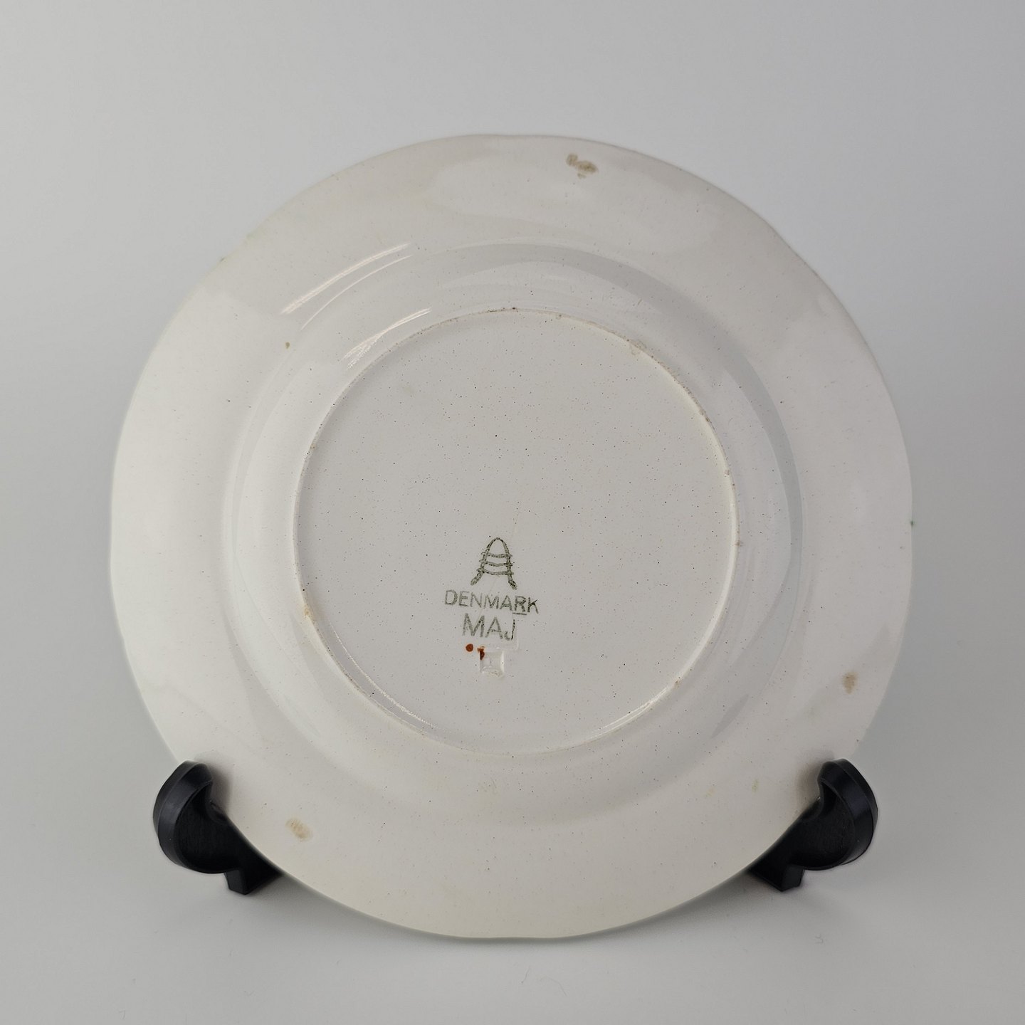 Flad kagetallerken i fajance fra stellet Maj fremstillet i perioden 1941-1966.