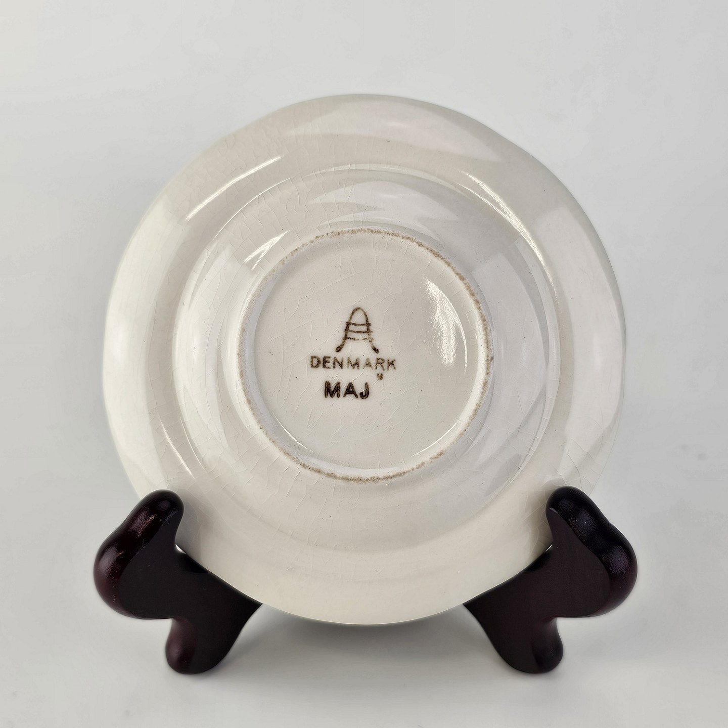 Rund asiet i fajance fra stellet Maj fremstillet i perioden 1941-1966.