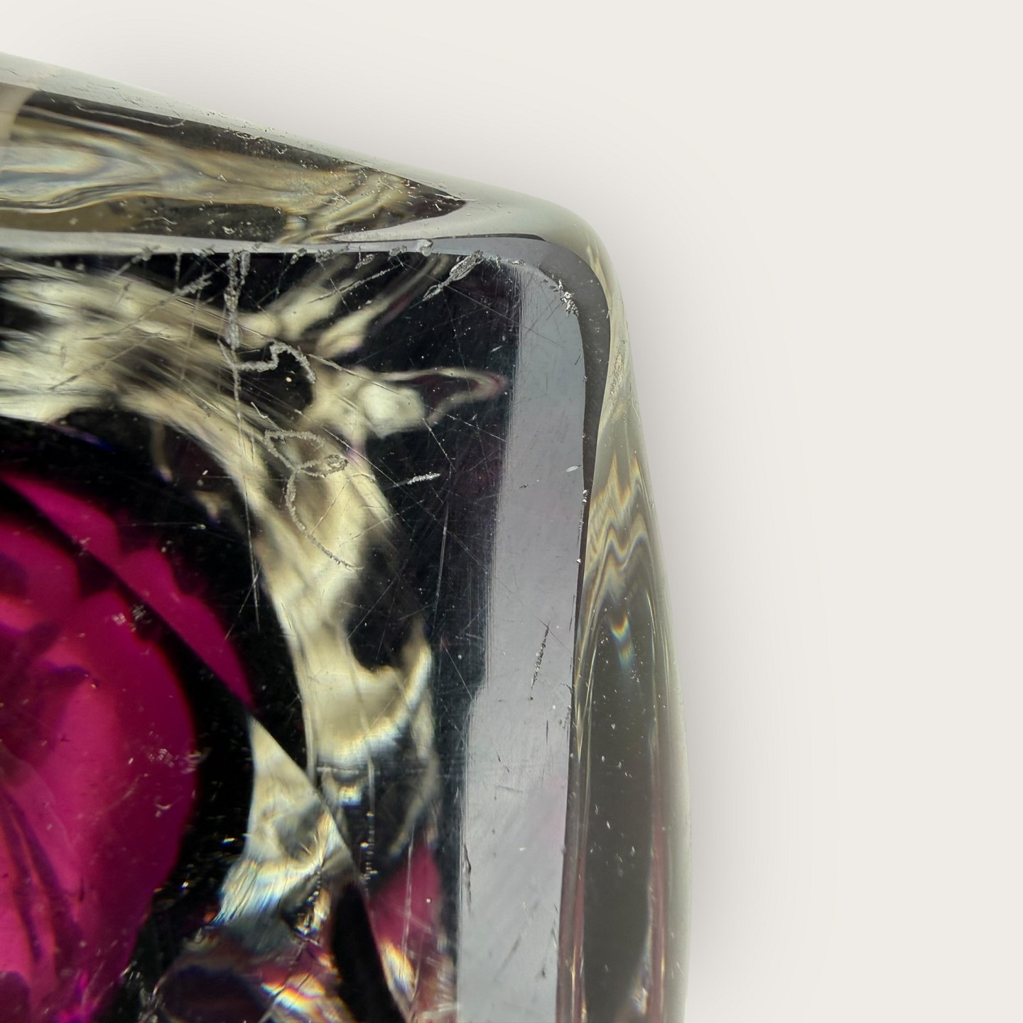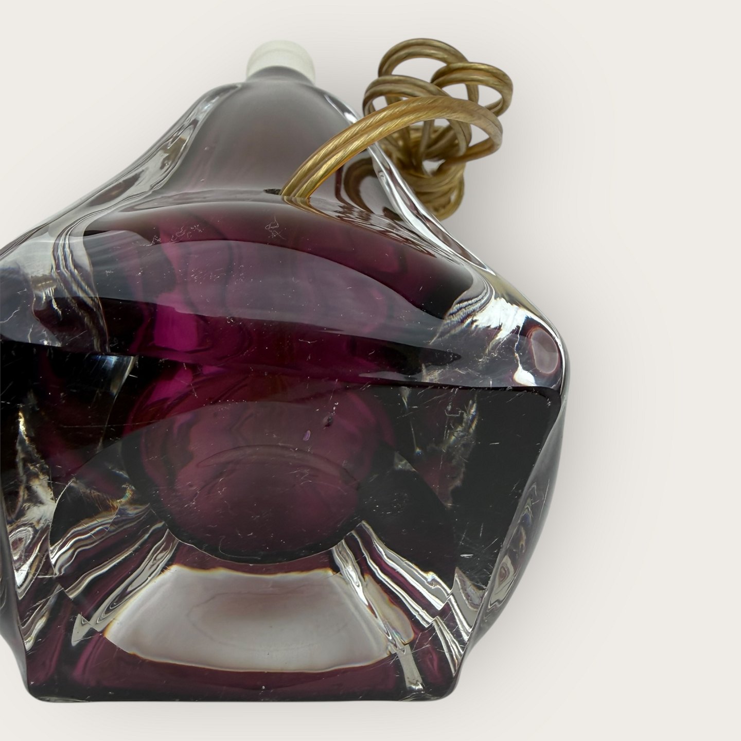 Glas bordlampe, sandsynligvis designet af Carl Fagerlund for Orrefors, utydeligt signeret i bunden (se foto), Højde med fatning ca. 36cm *pæn stand*