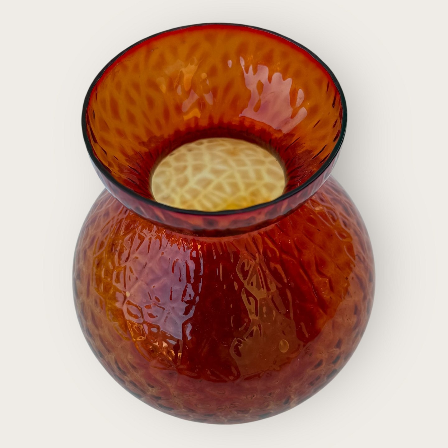 Hyacintglas, Fyens glasværk, Rødt, Med ru overflade, 10cm i diameter, 11cm høj *Pæn stand*