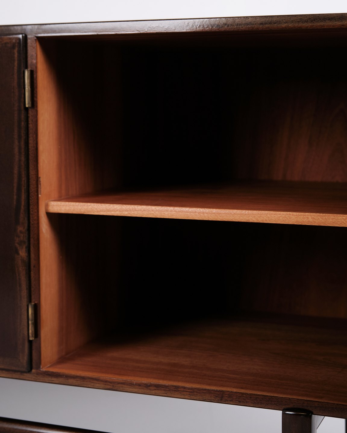 Mahogni skænk fra Rungstedlund serien af Poul Jeppesens Møbelfabrik. Klassisk dansk design med funktionelt og tidløst udtryk.