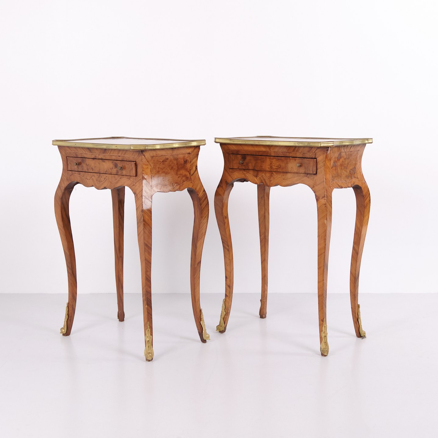 Et par sideborde udført i nyrokoko stil fra 1890’erne. Bordene er fremstillet i rosentræ med fine intarsiadekorationer, buede ben samt detaljer i bronze og messingkant. Det rigt udsmykkede formsprog og de svungne linjer afspejler den historiske stilretning med fokus på håndværk og ornamentik.