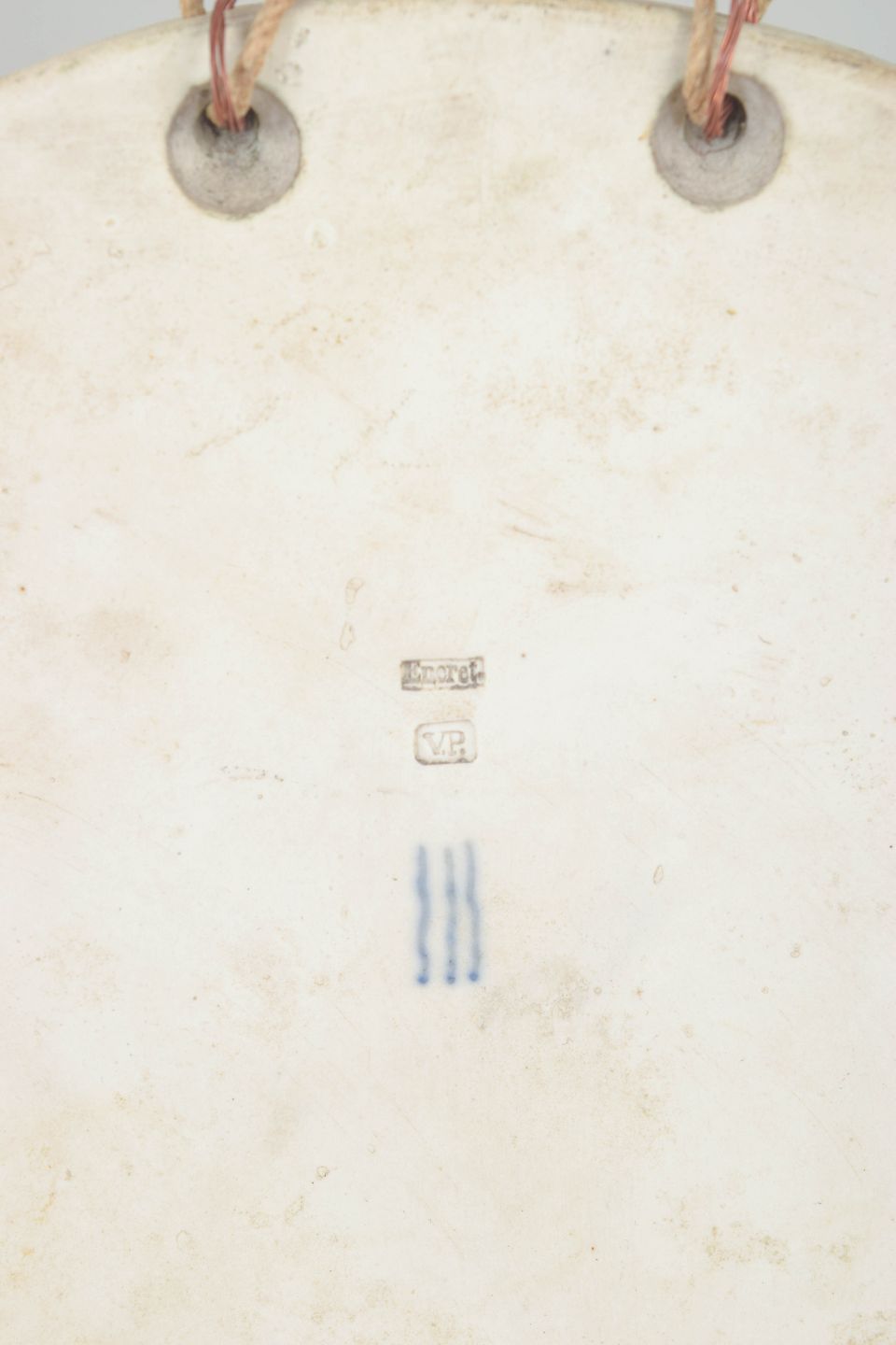 Rund vægplakette i hvidt bisquitporcelæn med relief af engelmotiv efter Bertel Thorvaldsen, udført med fine klassicistiske detaljer og blød modellering.