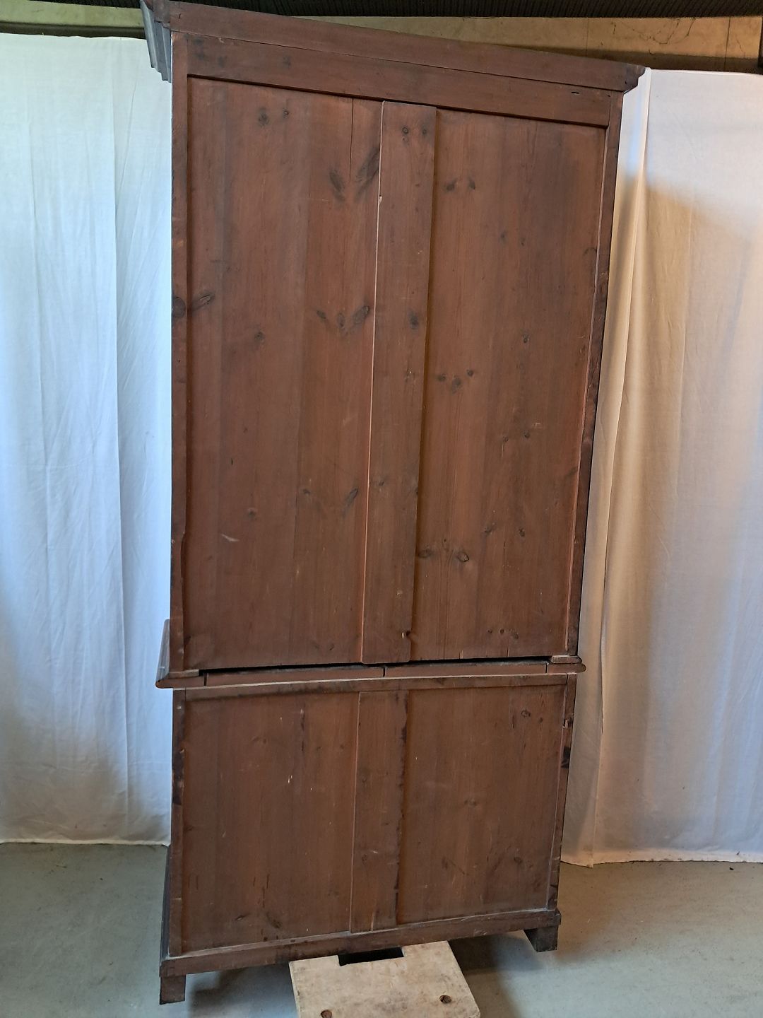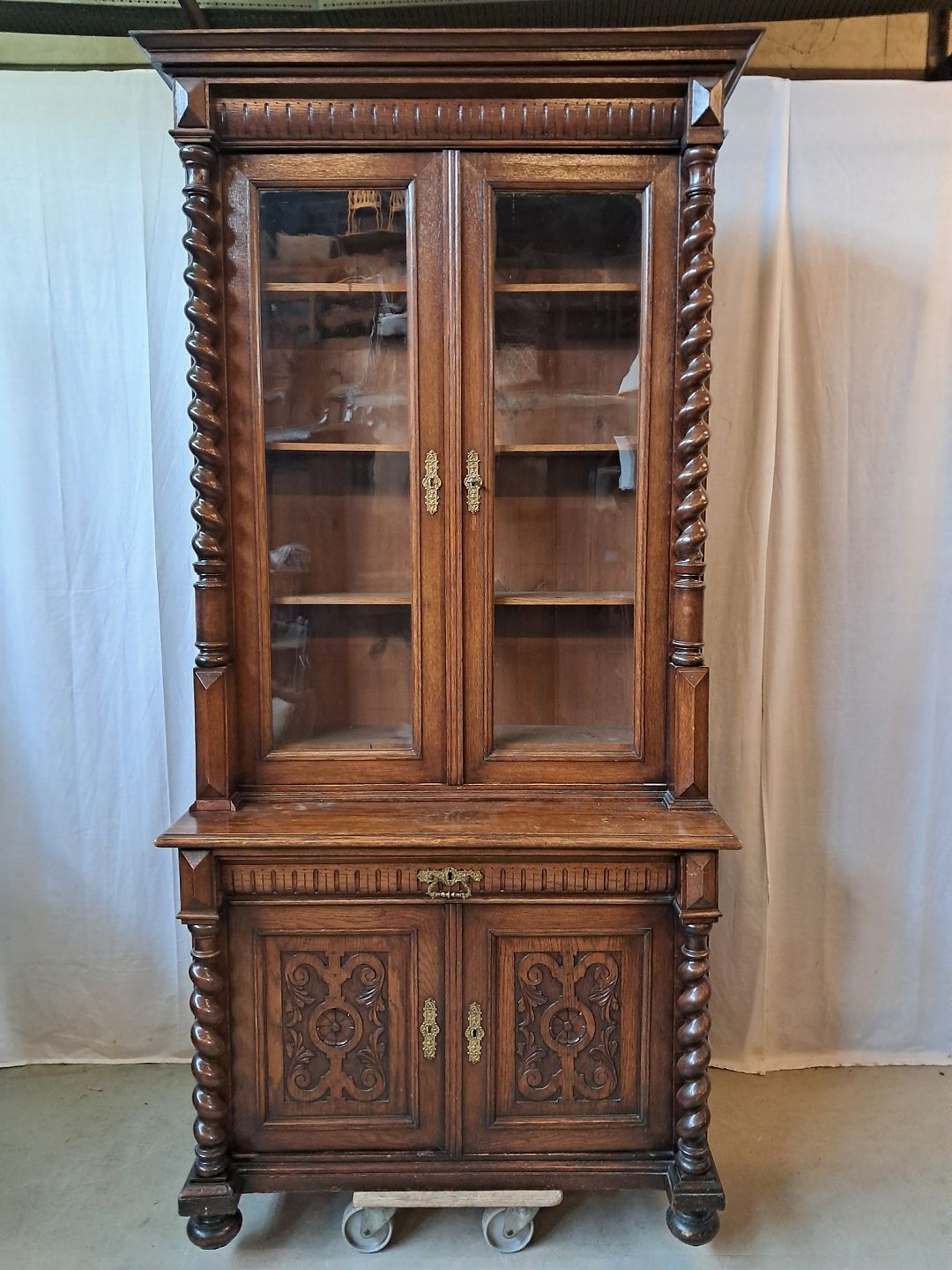 Skab med vitrineoverdel i massivt og fineret egetræ, fra 1900erne.
