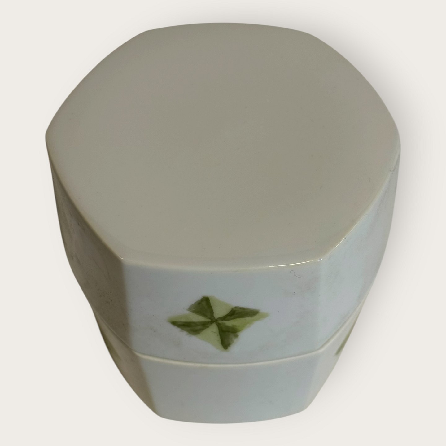 Bing & Grøndahl, Lågkrukke med grøn dekoration, # 5813, ca. 11x11cm, *Nogle meget små skrammer på kanten (se foto) ellers fin stand*