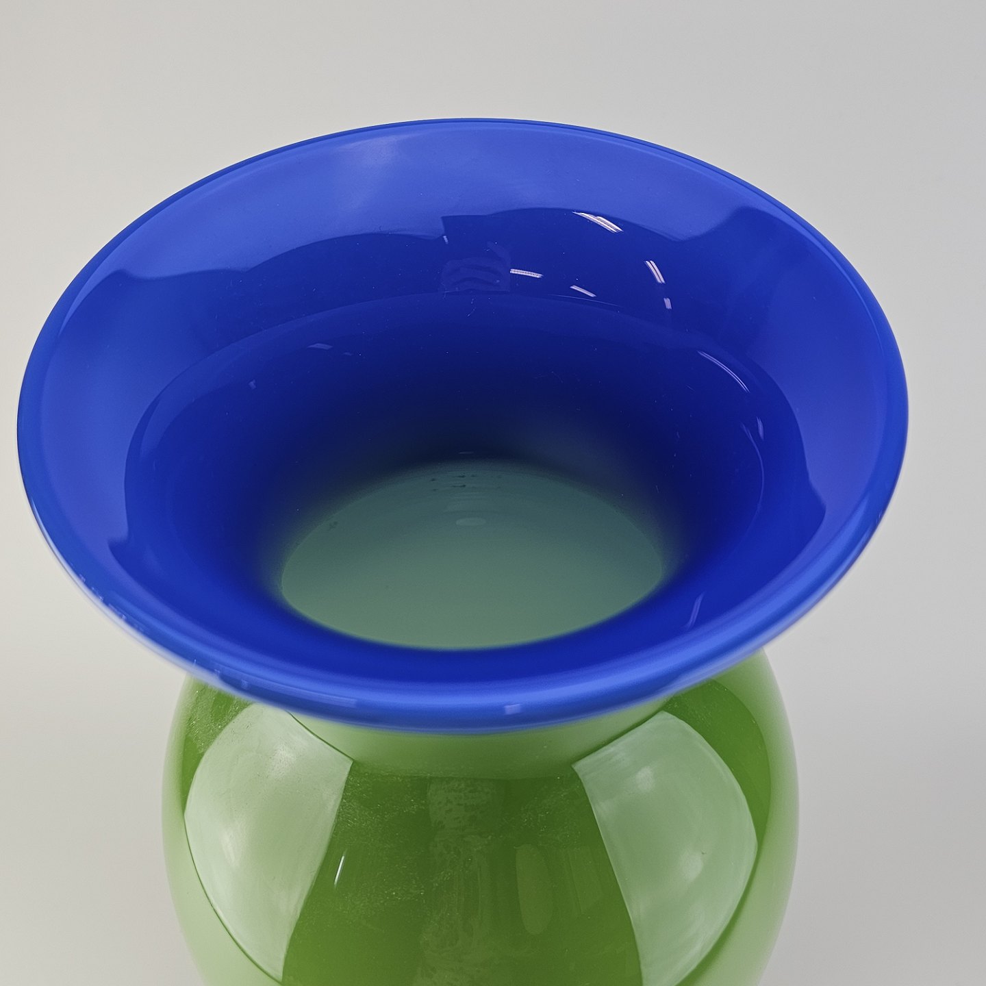 Isis vase i glas med grøn yderside og blå inderside
