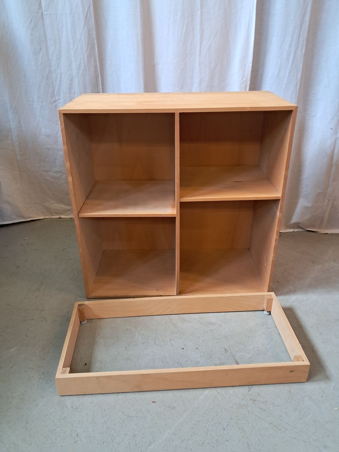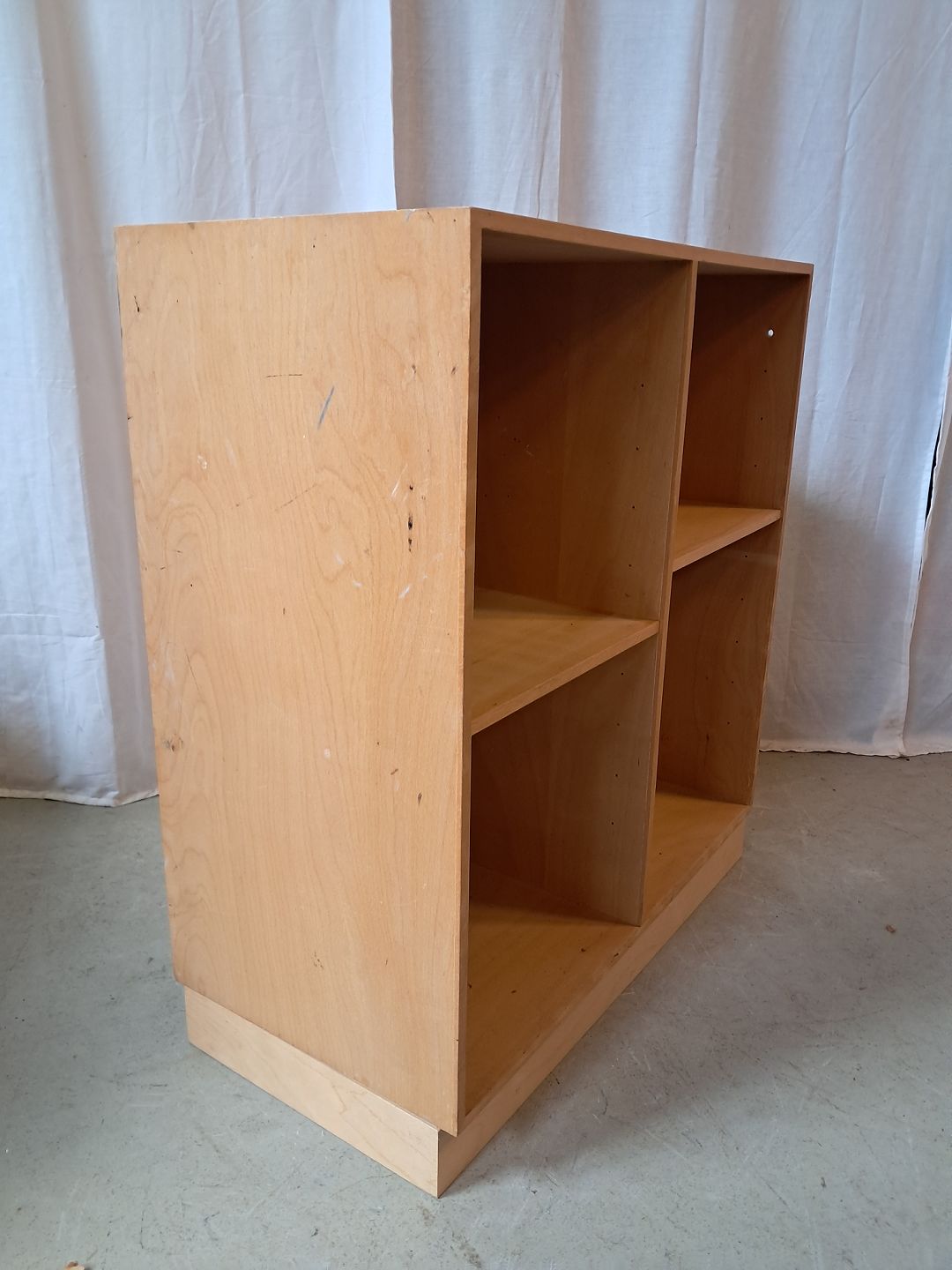 Reolkasse i bøge-krydsfiner med sokkel.